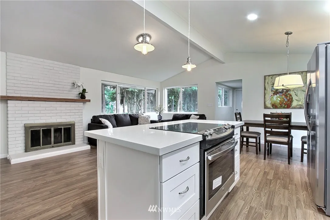 Desirable 1 story, 4 bedrm, 1 3/4 baths, completely remodeled home features: Vaulted ceilings accentuating the open floor plan, all new windows allowing the natural flow of light throughout, private patio off the kitchen/dining area, plus a private deck off the master bedroom, new floors throughout, brick fireplace adds a cozy touch to the living room. This delightful home will be the cheerful center for everyday living, close to the Town Center & Colonial Plaza. Don't miss this beautiful home.