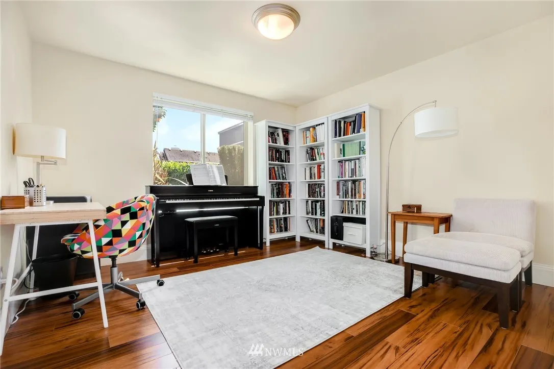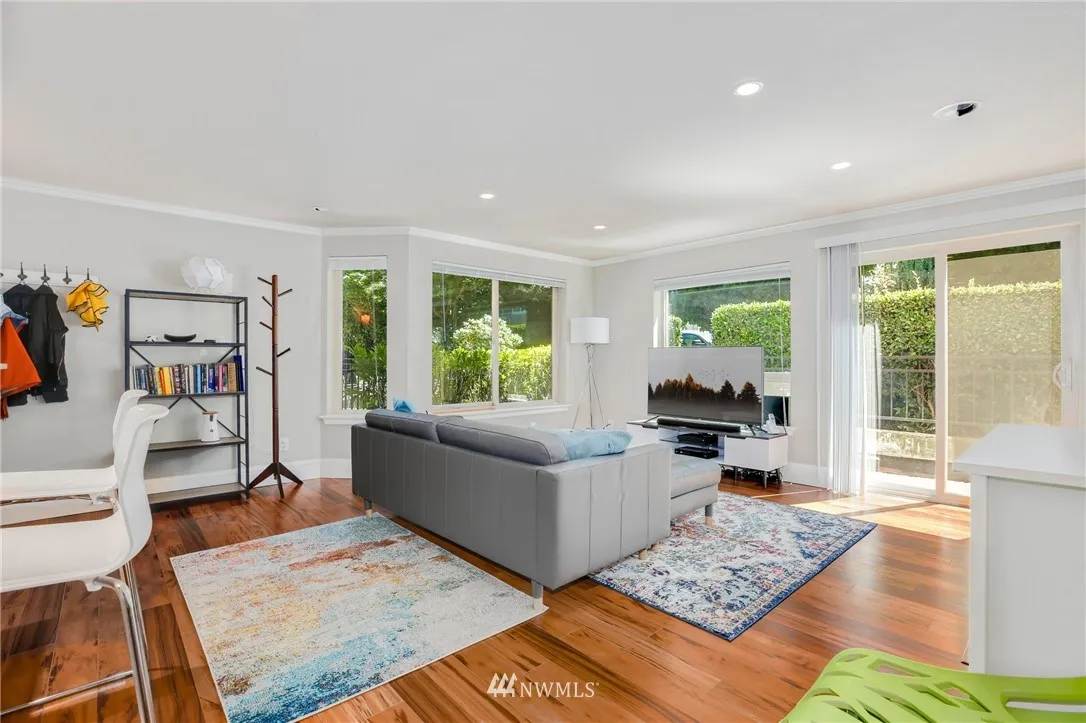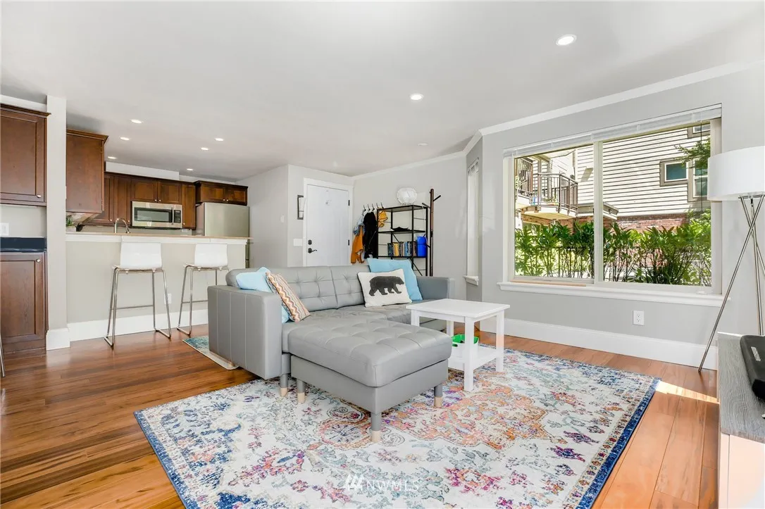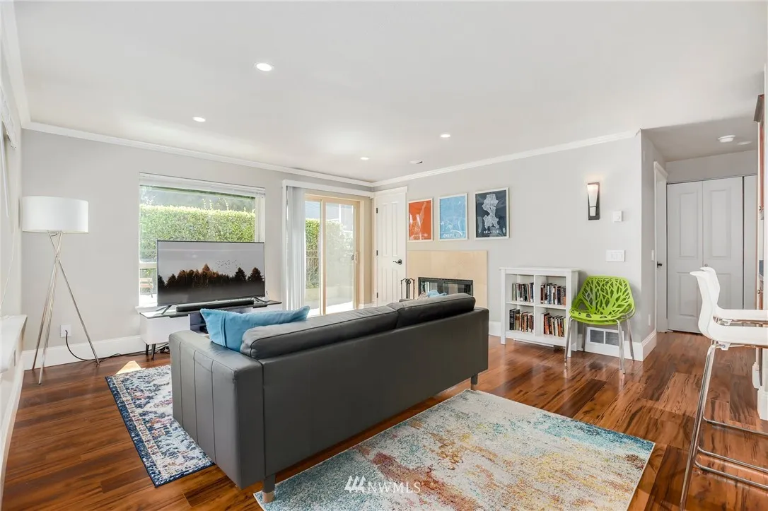 Fabulous south facing, ground floor, corner unit w/spacious private patio in lower QA! Light-filled living, a cozy fireplace, & updates throughout. Kitchen features updated cabinets & stainless steel appliances. Saddle up to the breakfast bar for your morning cereal & coffee. Parking in secure garage + storage unit. Wonderfully located on the desirable south side of QA. Zip to Downtown, Seattle Center, Gates, SLU with coffee shops, restaurants, entertainment, & transit at your doorstep.
