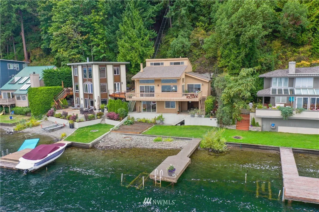 Rare waterfront opportunity on Lake Sammamish! Lots of windows let in an abundance of light & frame the beautiful PNW sunrises. Endless views of Lake Samm, Mt Rainier & moon rises in the late summer. Outdoor living is endless: a deck extends entire width of main floor, stairs lead down to a partially covered patio, flat 50' grass yard w/veg gardens, fire pit & direct access to private dock w/boat lift. Rejuvenate in your own steam rm. Electric tram takes you to a peaceful sanctuary on the lake.
