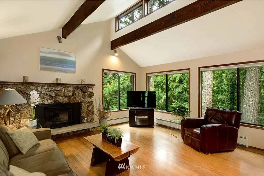 Peaceful Issaquah home located on 1.25 acres in the woods of Tiger Mountain. This 3 bdrm 3 bath home has an abundance of natural light. Updated kitchen with stainless steel appliances, two pantry's, wood block island all leading out to a private deck. Master bedroom with walk-in-closet, fireplace, deck and master bath. Beautifully landscaped yard, storage shed, new exterior paint and new 50 year roof! Ample space for cars and RV parking. Easy access to Tiger Mountain trails!