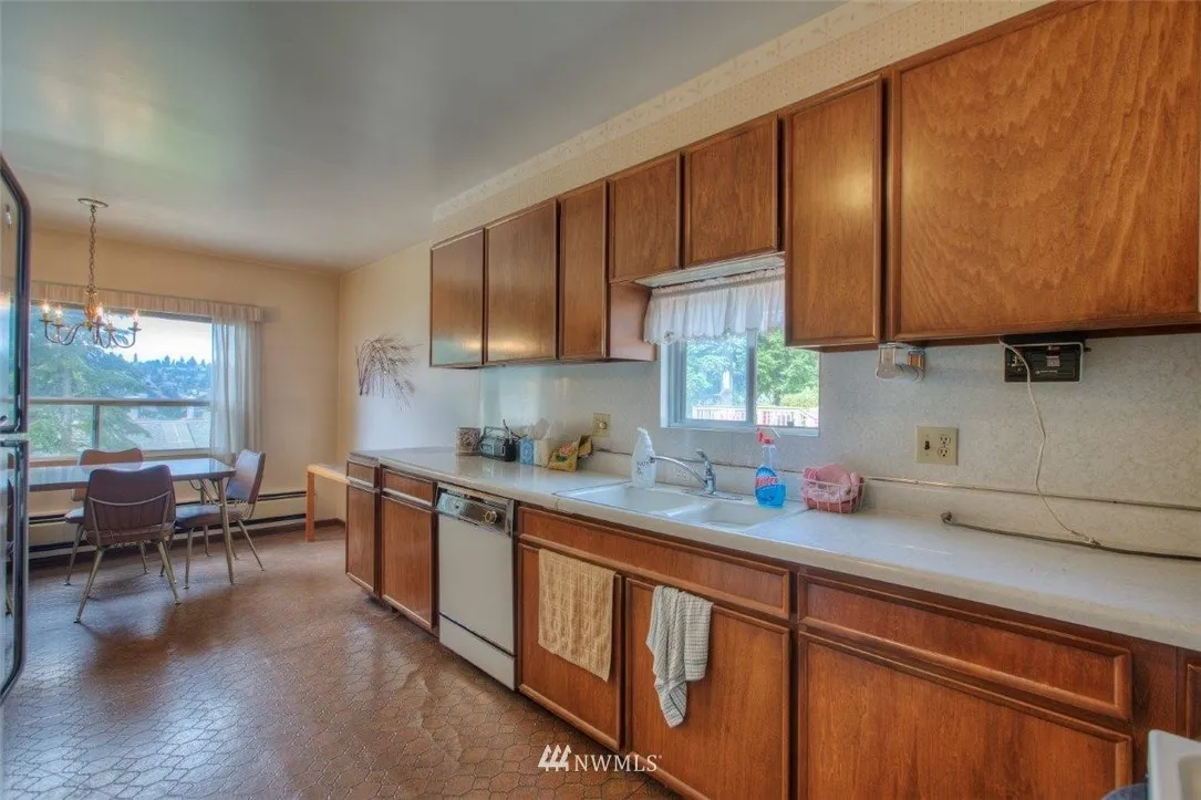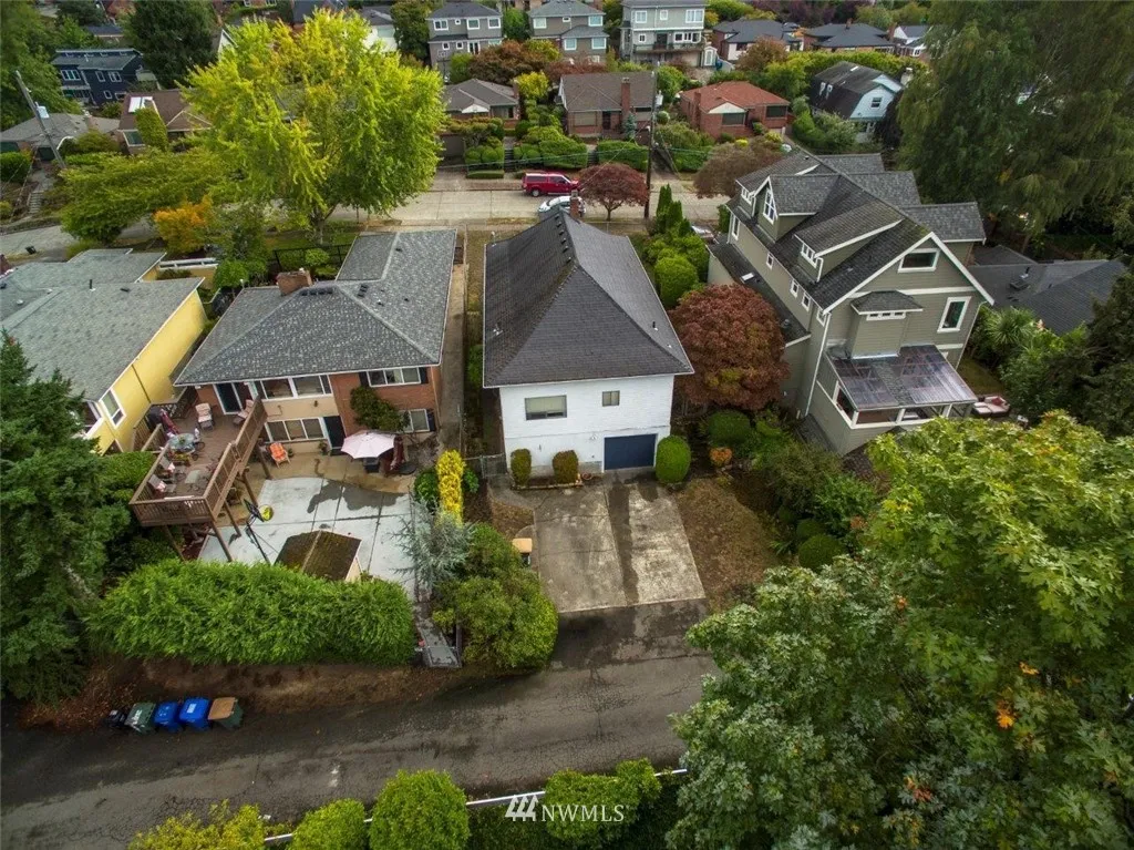 Quaint home on the west slope of Queen Anne, this location offers western exposure for coveted sunset & territorial views of Shilshole to Elliot Bay & Olympic Range views. A welcoming floor plan w formal living room leads to lg. kitchen. Mature landscaped yard the home sits in the middle of lot w/room to expand in front or back or go up & build your dream home & take advantage of views or new ADU rules. Convenient ally access that dead ends. Centrally located to QA shops & quick downtown access.