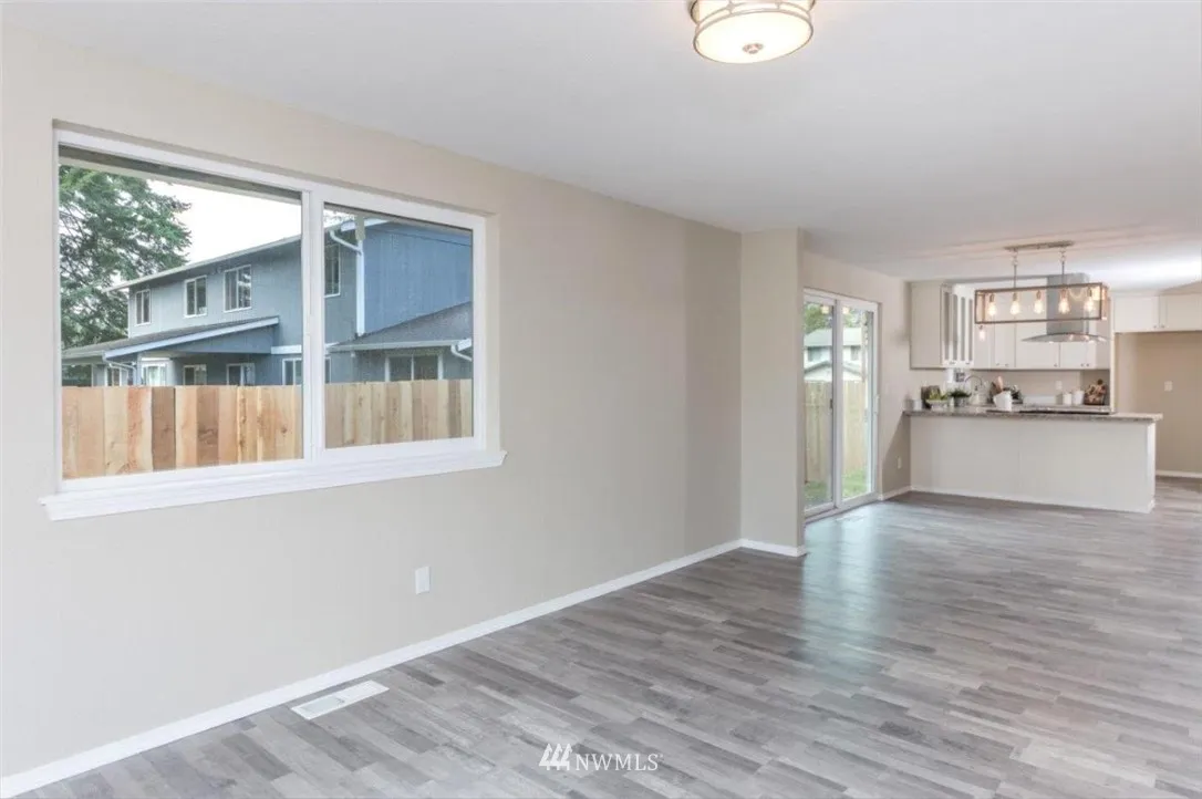 This beautifully updated 3 bed 2 bath Rambler features a large living room, spacious kitchen with white cabinets and granite slab counters, stainless steel appliances, formal dining room, additional family room, laminate floors through the main living spaces, great master bedroom with master bath, new carpet in the bedrooms, fresh paint inside and out, new windows, newer roof, new fixtures throughout, oversized fully fenced lot, RV Parking, and just minutes to JBLM and other amenities.