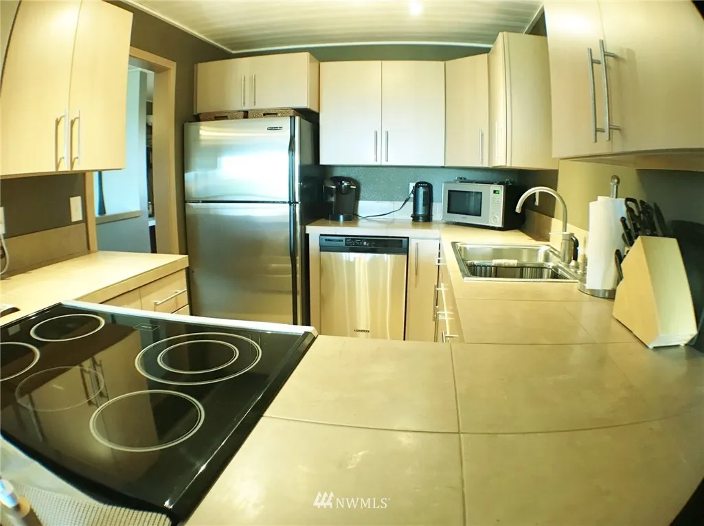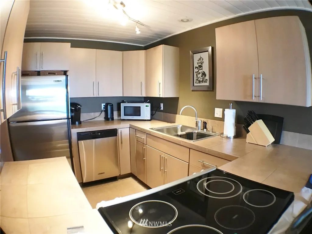 This recently remodeled ocean front townhouse features an abundance of quality touches. Tile entry and hallway, custom gas fireplace in kitchen-living area, large master bedroom with wall-to-wall closets, dedicated utility room, ocean view and private outdoor deck. Entry from garage into a private courtyard. Very well-maintained building and units. Ocean access on path to beach. Building is 100% long-term owners. Cats and dogs OK.