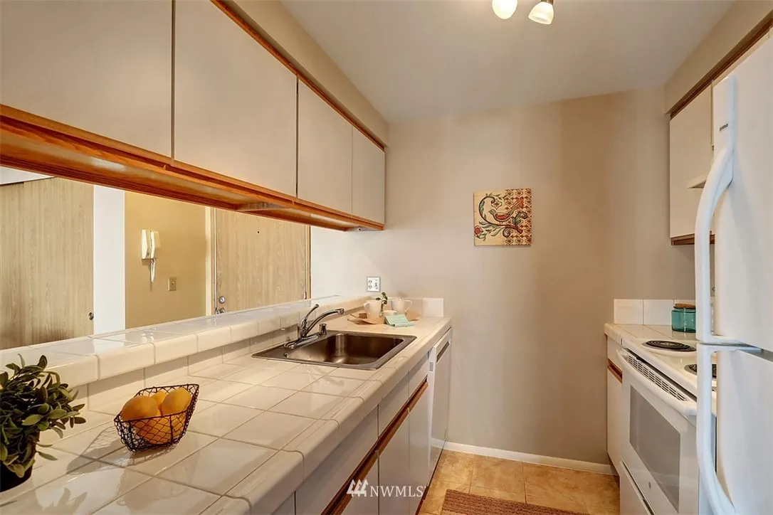 Great top floor one bedroom unit in a small building on a quiet residential street. Living/dining room with fireplace. Galley kitchen with plenty of cabinet/counter space. Common garage parking and storage. Well managed building with good reserves. No rental cap. 2 pets allowed fantastic location for biking/driving/or buses. Perfectly located between Phinney/Ballard and Fremont. Why rent when you can buy so affordably.