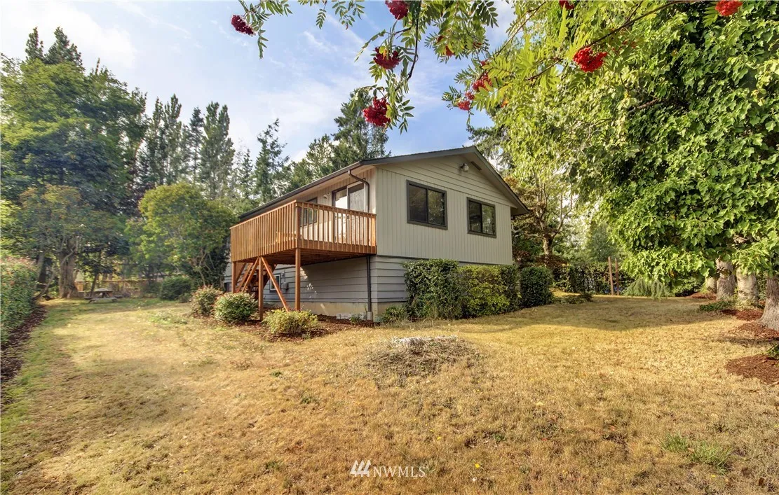 Spacious home with mid-century charm on a large lot in a cul-de-sac! The main level features hardwood floors & built-ins, a lovely living room w/brick fireplace & big windows, roomy kitchen, a sunny south-facing deck off the dining rm, Master bdrm w/ensuite bath, plus 2 more bdrms & full bathrm. Lower level has a family rm w/fireplace, new ¾ bath & another bdrm. You'll love the fantastic wrap-around yard! New water heater & freshly painted exterior. Convenient location near shopping, I-5 & more!