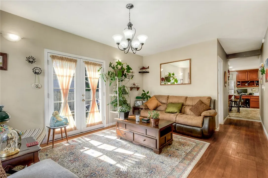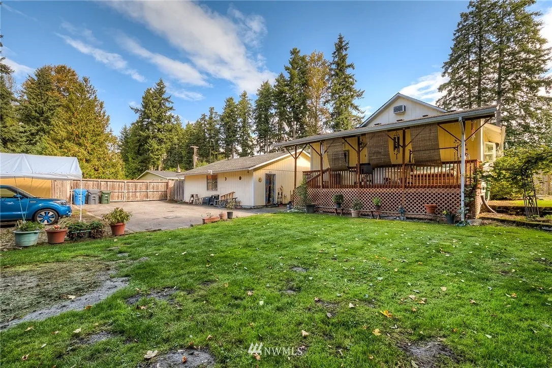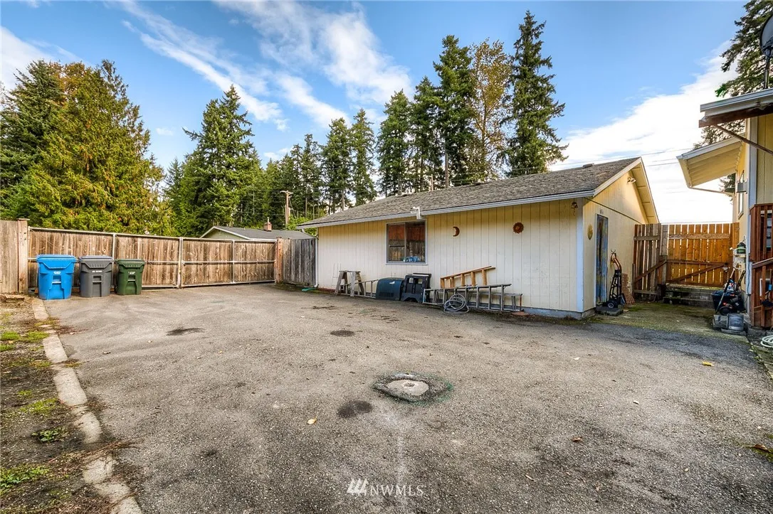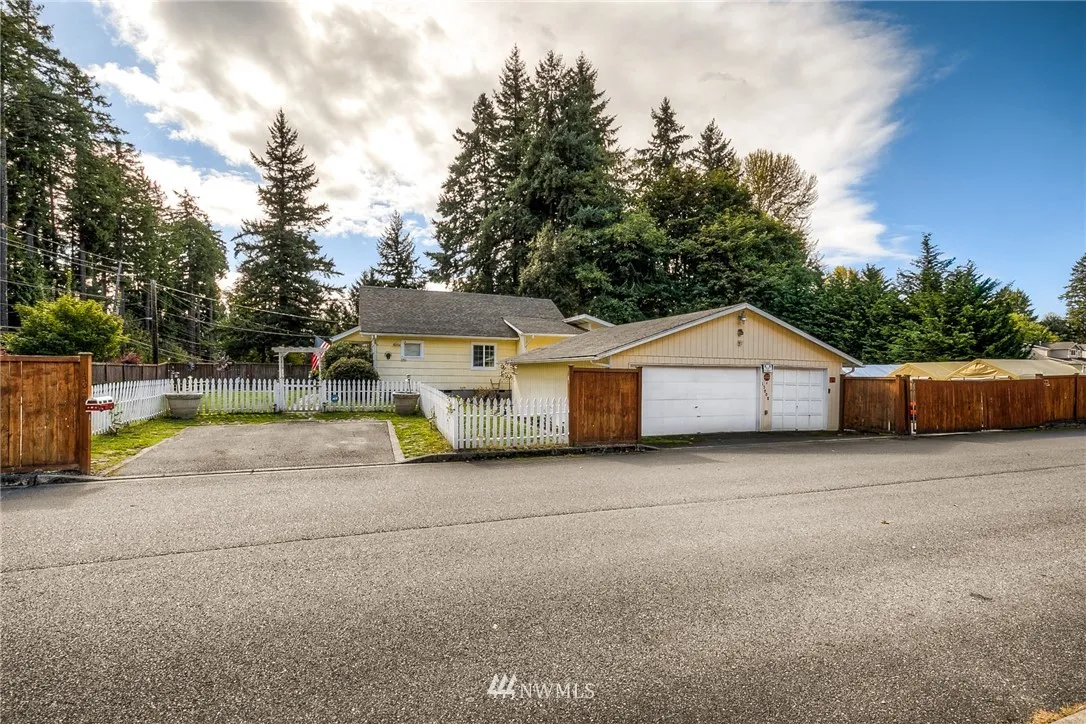 Car fans here's your house! This 3 bedroom/1 bath home with hardwood floors, updated kitchen, living room with French doors to patio, family room with gas fireplace and large covered deck also features room for all your cars/RV's/toys! In addition to the 3 car garage, 900s.f. garage a double gate gives you access to a large, and fully fenced backyard with more partially paved parking space and a recently added 12 X 12 ft storage building.