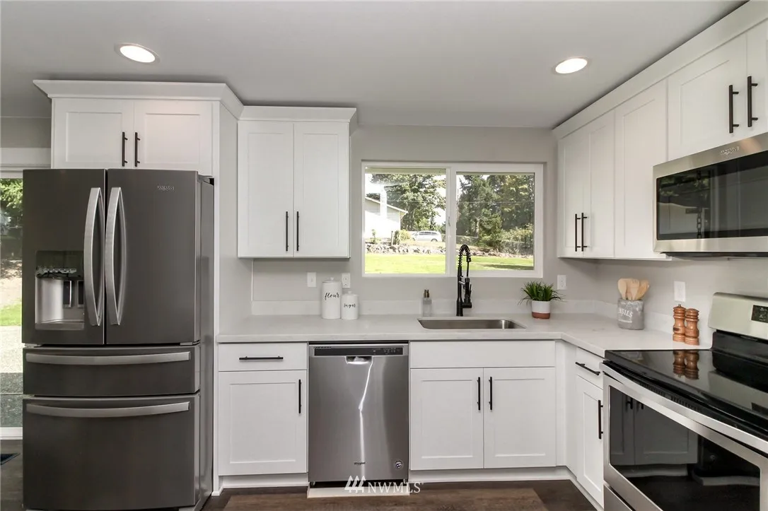 A Must see! lovingly rejuvenated home w/ attention given to every Detail & Design! Open floor plan & Ample counter space in your brand new kitchen great for entertaining. Great location for commuting w/ privacy on just shy .5 acre corner lot w/ access to the back for RV parking or storing all your toys! Issaquah school district K-12 all walkable. New roof, Windows, Furnace, SS appliances, Cabinets, Quarts Countertops, Flooring, Int./Ext. Paint, Doors & much more! Sub dividable for future Equity!