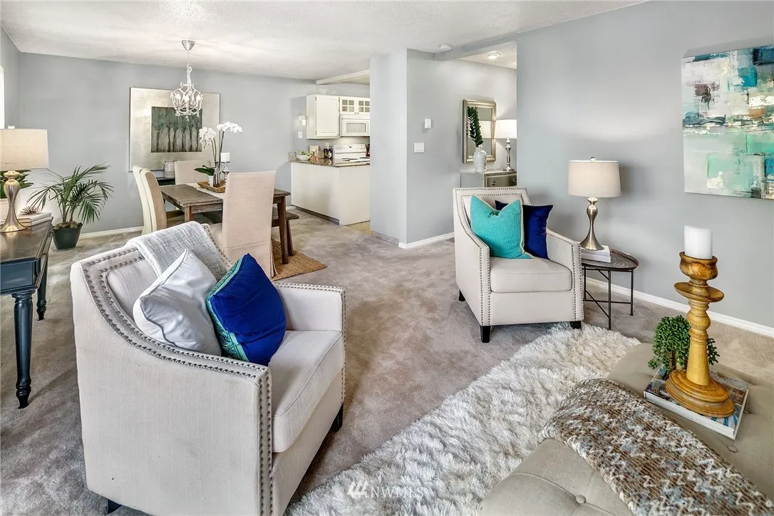 Spacious and bright, ground floor 1-bedroom, 1.5 bathroom condo. Updated kitchen and bathrooms, large Master suite with walk-in closet. Large, private deck with territorial views. Kitchen with tons of counter space, opens to dining room and living room--great floor plan for entertaining! Great opportunity for a lovely home or investment (no rental cap). Super quiet but close to freeways, restaurants, shops. Well-managed HOA, low dues, great pool/exercise/club room.Just move in and enjoy!