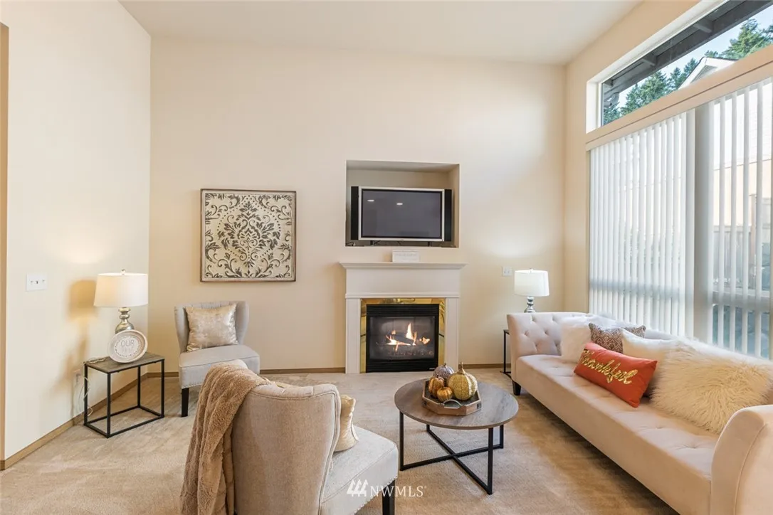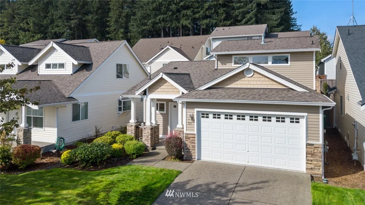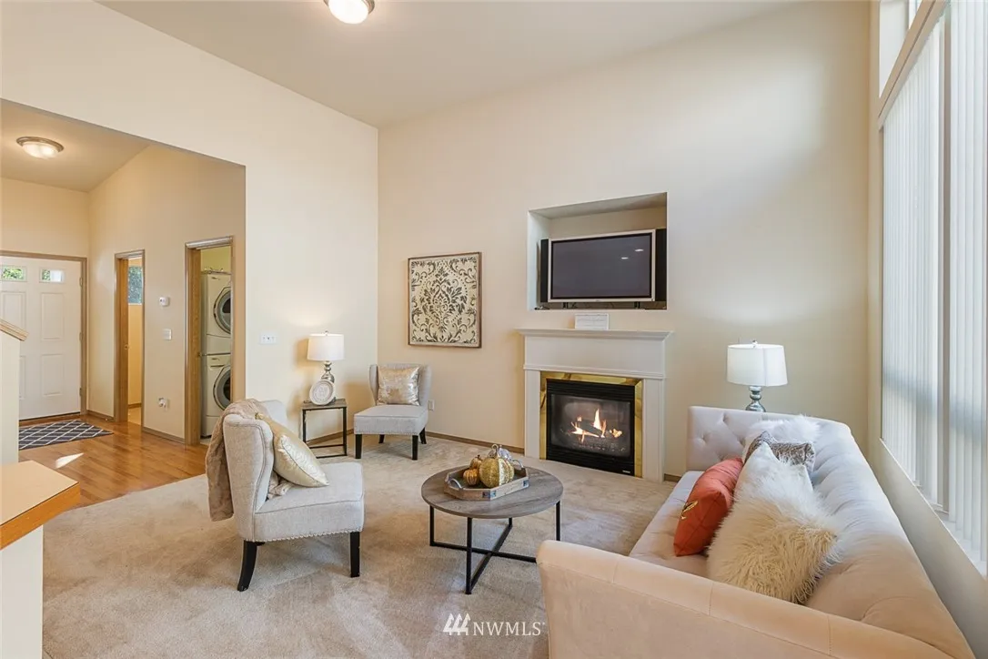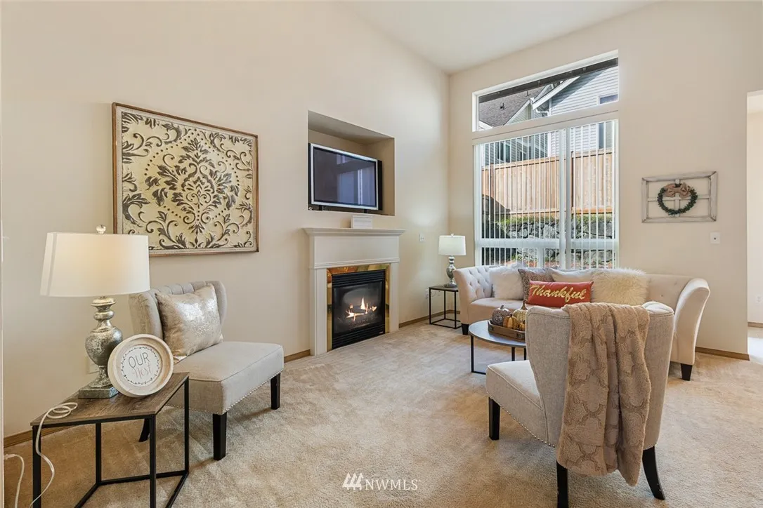 Charming home located in aesthetic Grass Lake Village. Vaulted ceilings & bright windows bring in an abundance of natural light lending a cheerful view of this open concept home. Spacious and rare master on main suite w/walk in closet & bath includes a view to the private backyard that offers peace and tranquility. Huge bedroom upstairs with full bathroom in hall & extra storage allow plenty of space to spread out. HOA dues include yard maintenance - close to freeway, amenities, parks & more!