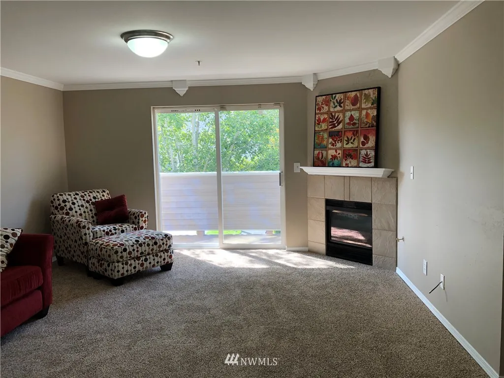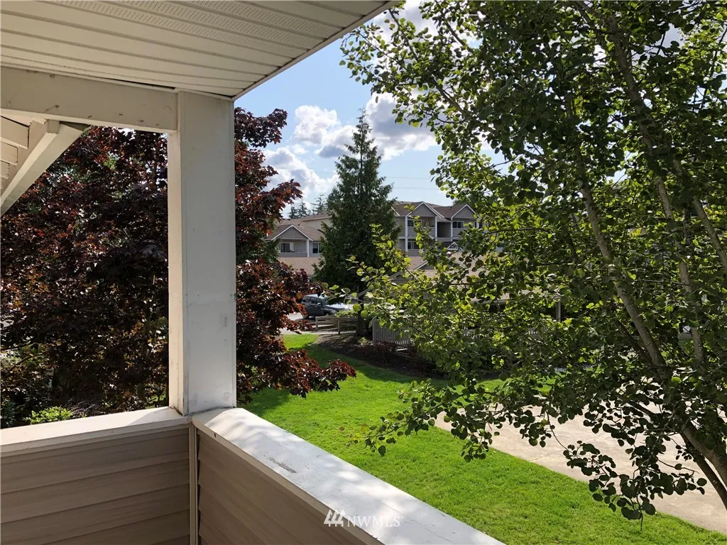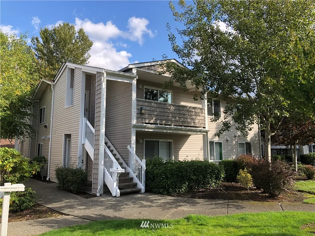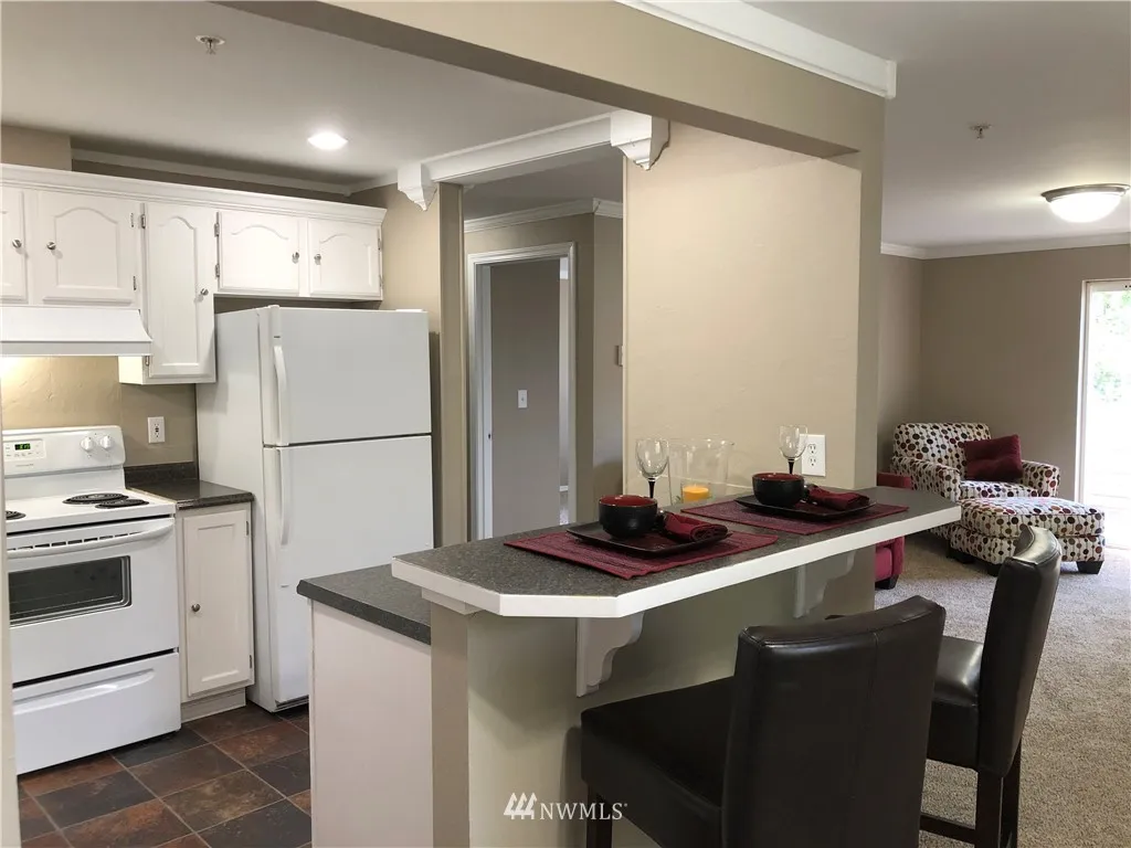 When location is everything... NEWLY updated top floor, end unit overlooks the courtyard for privacy plus! New flooring, (mostly all) new appliances, new kitchen counters, carpet and 6-panel doors throughout. Stackable W/D stays too - it's ready to move into. Master is huge and features private bathroom. 2 other bdrms close to hall bath. Gas fplc + view deck. Gated, secure community with 1 car garage AND 2 dedicated spots. Close to Boeing, shopping and schools. Bus line runs right in front!