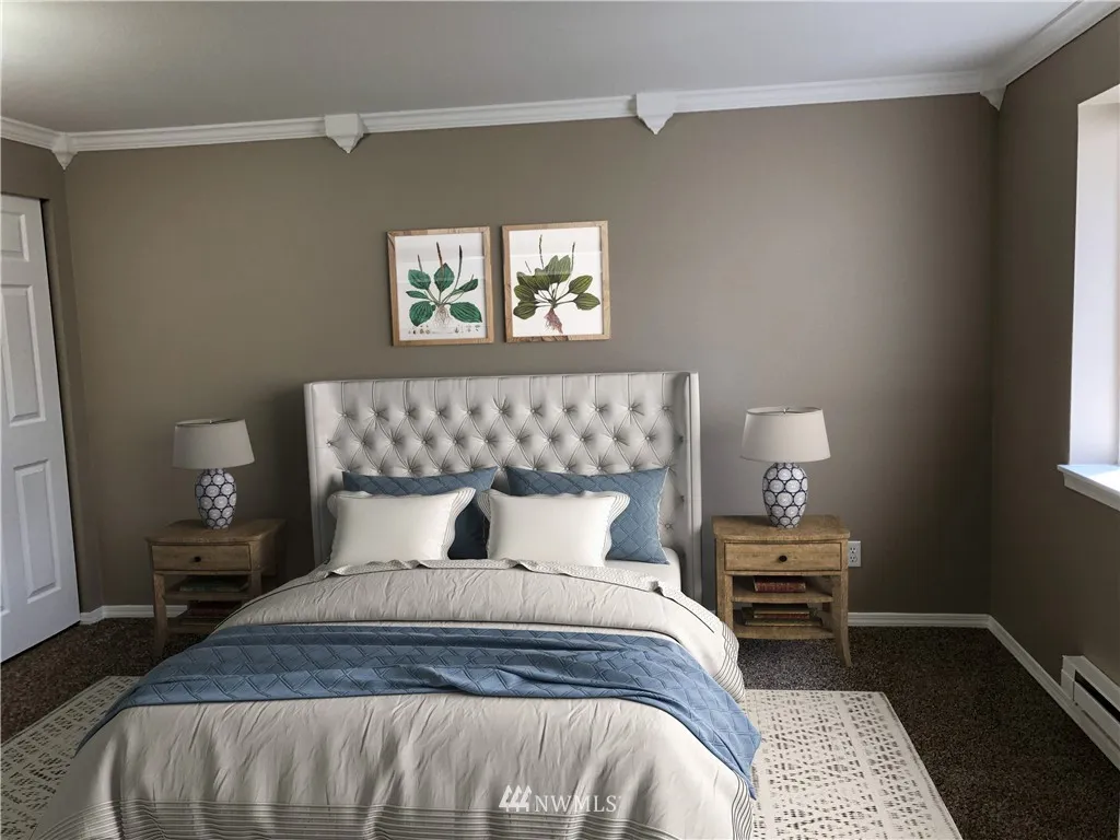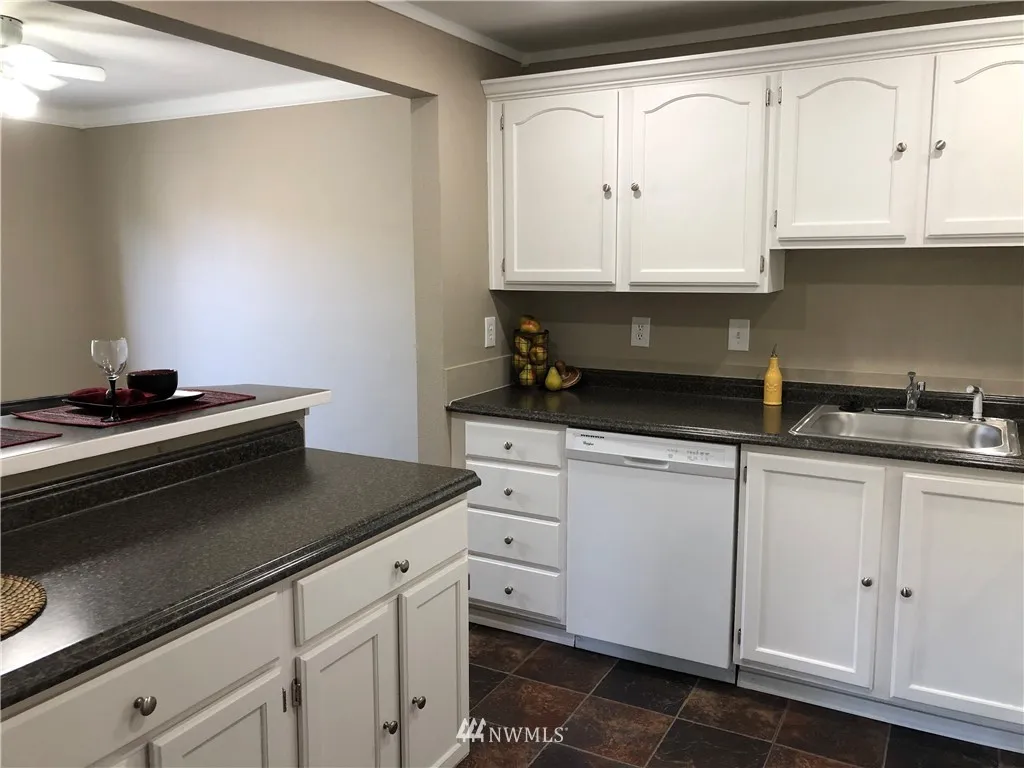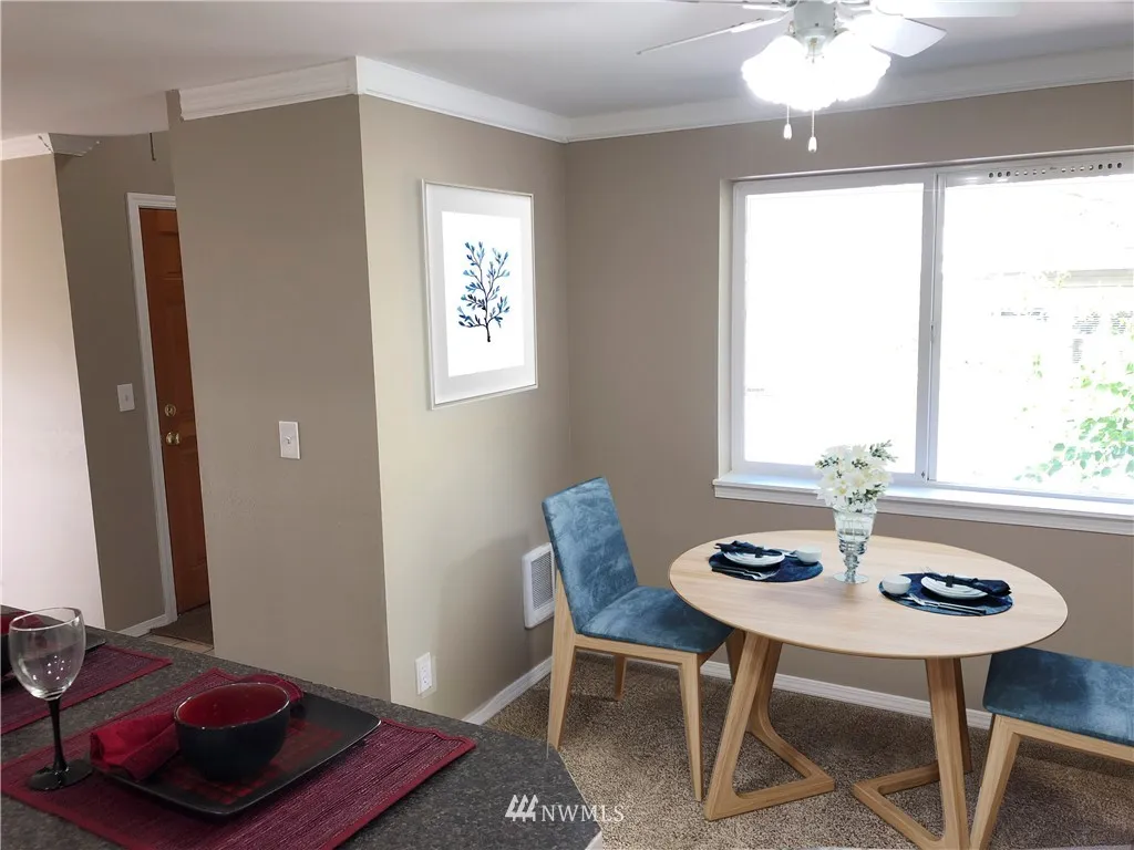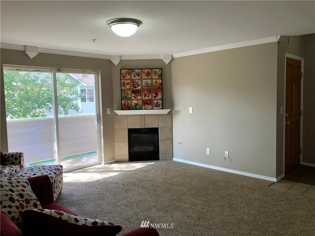 When location is everything... NEWLY updated top floor, end unit overlooks the courtyard for privacy plus! New flooring, (mostly all) new appliances, new kitchen counters, carpet and 6-panel doors throughout. Stackable W/D stays too - it's ready to move into. Master is huge and features private bathroom. 2 other bdrms close to hall bath. Gas fplc + view deck. Gated, secure community with 1 car garage AND 2 dedicated spots. Close to Boeing, shopping and schools. Bus line runs right in front!