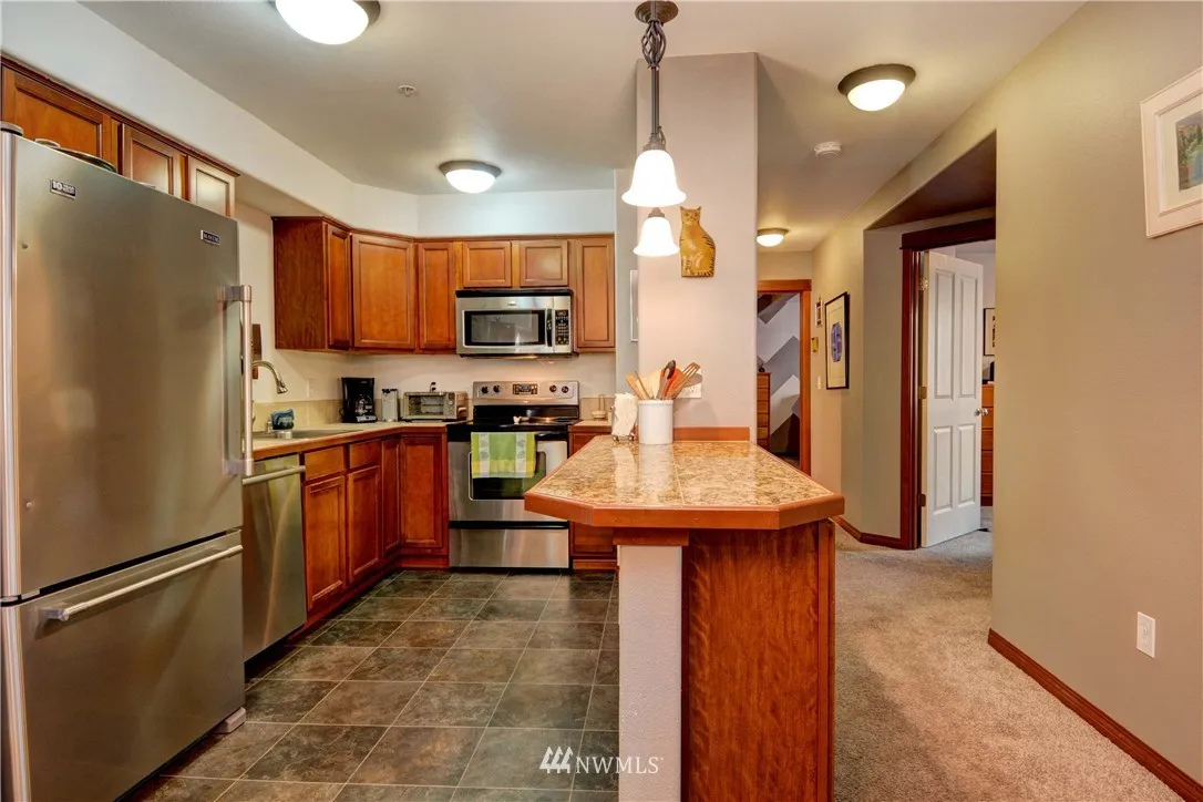 Lovely Level entrance 3 bedroom & 1.75 bathroom ground floor condo with no stairs. Stainless appliances, newer washer and dryer, granite tile countertops and a gas fireplace. Large 2 car a garage with level entrance. Fenced yard.