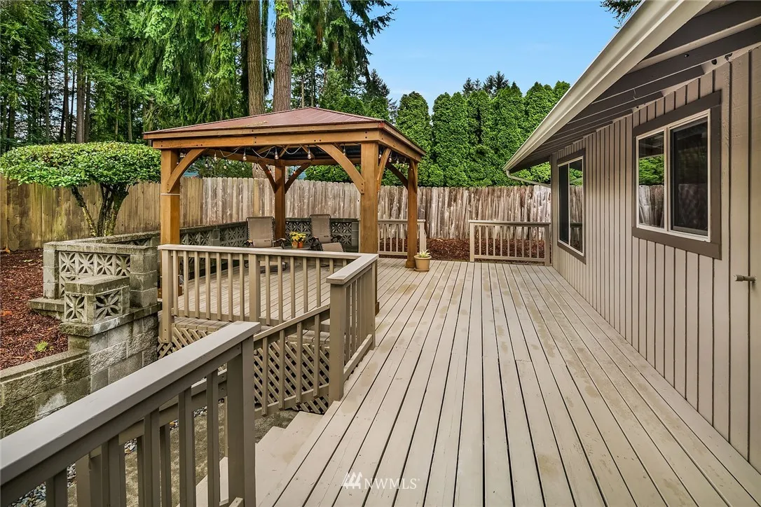 Meticulously maintained Tri-level home in Briarwood. 4 Bedrooms up, huge family room & laundry down, 2.25 Baths with large 2-car garage. Kitchen has plenty of cabinets with pull-outs and ample counter space. Eating area in kitchen leads to back deck. Updated bathrooms. Spacious laundry room. Newer roof. Newer windows and sliders. Wrap-around balcony. Entertainment-sized deck with gazebo. Corner lot with fully fenced, low maintenance yard. Gazebo on deck stays. Quiet neighborhood.