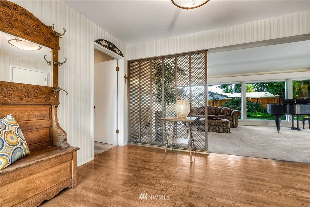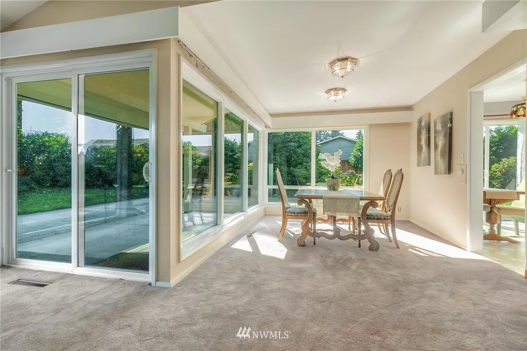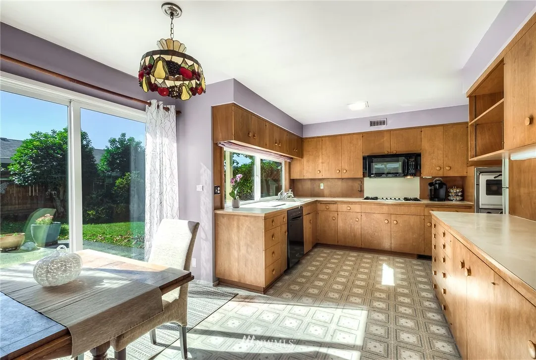 A Commuters Dream in Scenic Hill! Minutes to Sounder Transit, hwys & amenities. This three-bedroom midcentury, custom designed & well maintained with original period details is a must see. Incl. warm, fine finished paneling around living room fireplace. Walls of glass & huge windows through out draw attention to the greenery in yard. Several accesses to covered patios. A large den w/gas fireplace, lined with built-ins, plus abundant cabinetry, nooks & storage throughout. Prime to make your own!