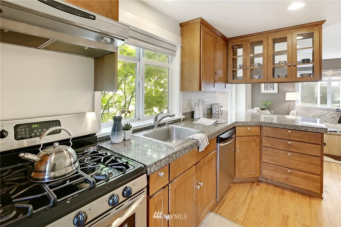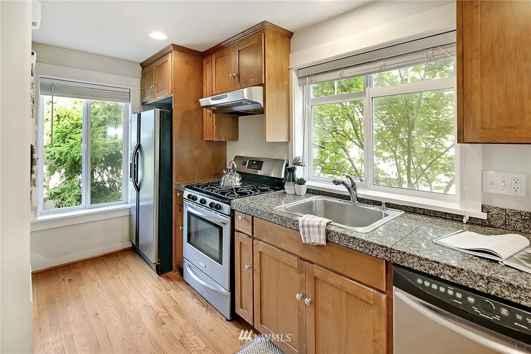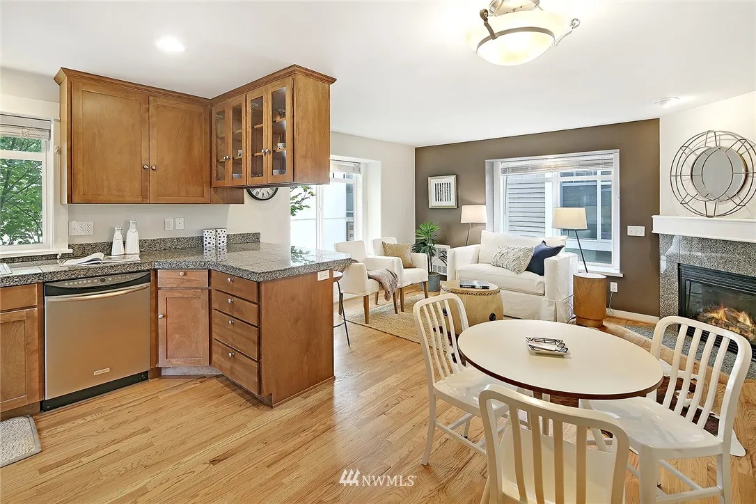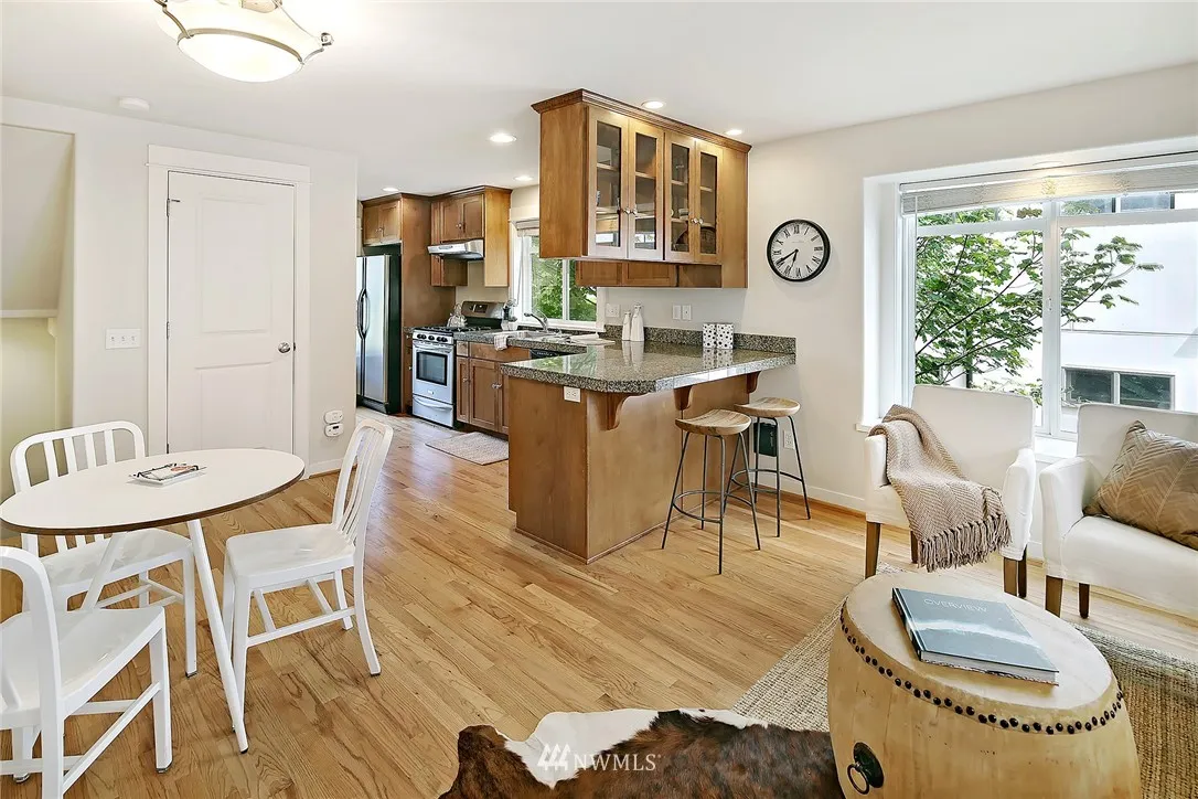 Light & bright townhouse perfectly situated between Wallingford & Green Lake. Walk to all of the amenities Wallingford has to offer; restaurants, bars & shopping. 3 blocks to Green Lake. 10 minutes to SLU, Downtown, Fremont, Ballard & UW. This home offers hardwood floors, radiant heat, vaulted ceilings and an easily accessible 1 car garage. Private, fenced in back yard. New interior & exterior paint as well as a new hot water heater. Quiet, back yard unit of a well situated corner lot.