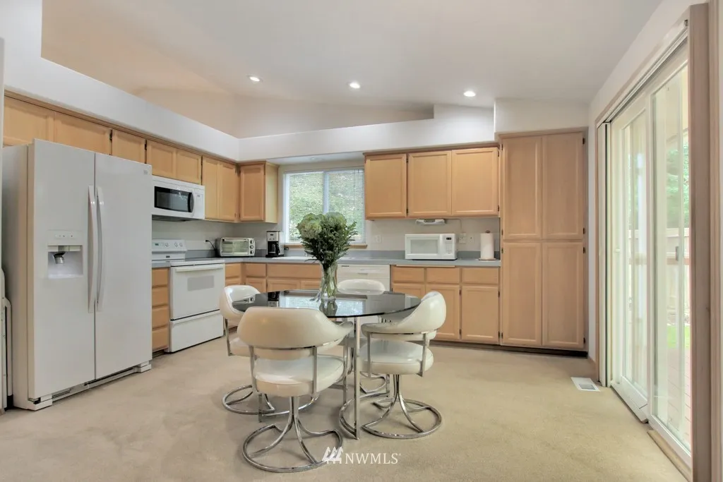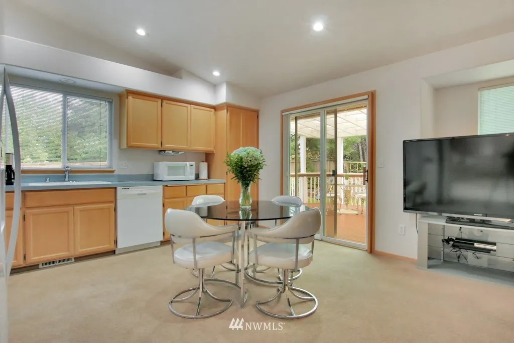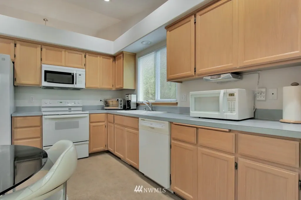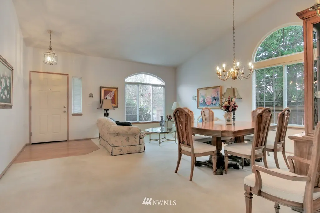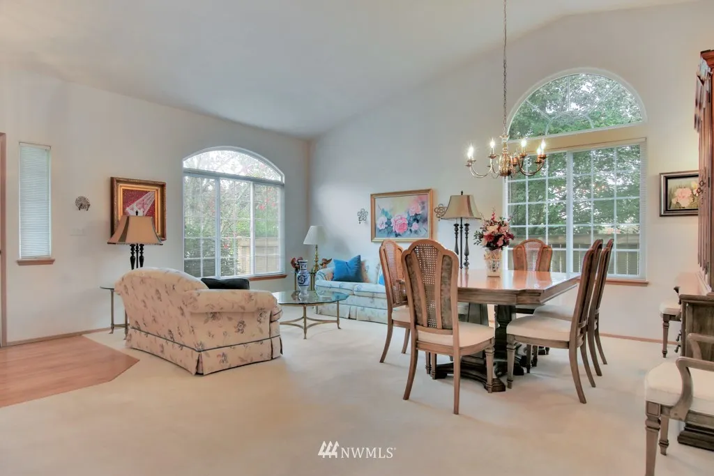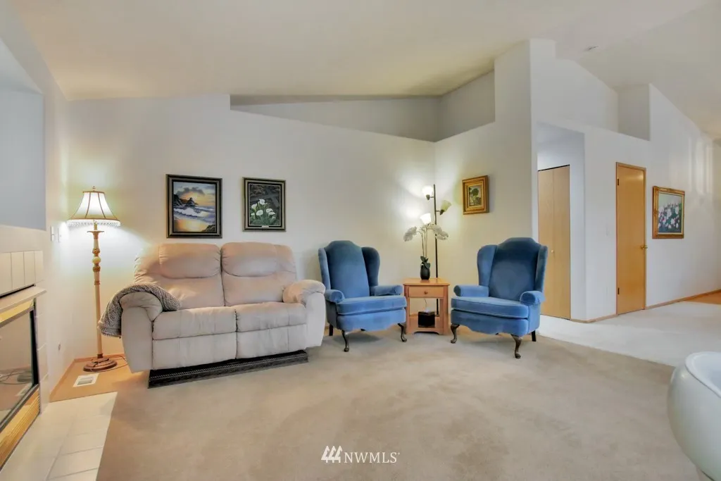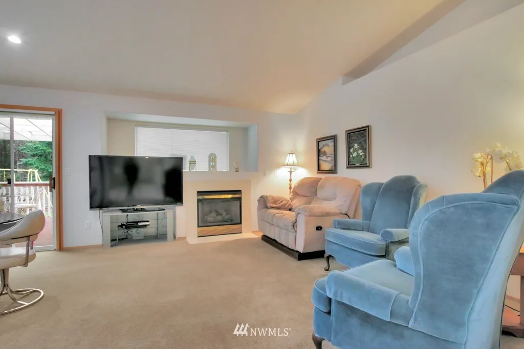 One level living space of 1398 sq ft with additional outdoor large covered back deck for year around BBQ's. Beautiful hardwood entry, soaring vaulted ceiling, dedicated formal dining space, enormous kitchen and cozy gas fireplace in the family room make for comfortable living. Garage ramp and handles in bathroom for accessibility. Well cared for home with new roof installed December of 2018. Premier location of Sunrise is close to shopping, dining and short drive to JBLM.