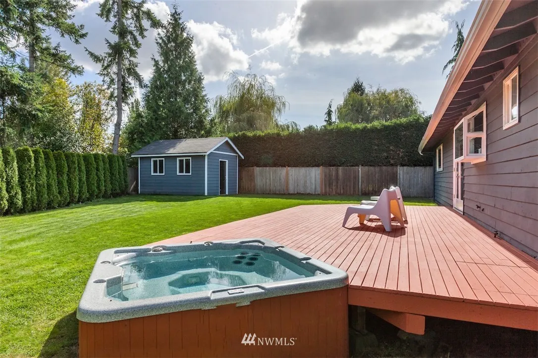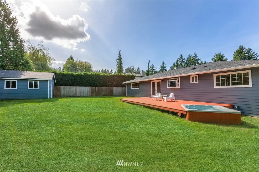 Storybook Bliss – Grass Lawn. Darling 3bed, 1.75 bath home in coveted Woodford offers a nostalgic setting + dreamy backyard. Hdwd flrs thruout, fresh int paint, 50-yr pres. roof, hot tub, huge deck + sprawling level yard, det'd shop, ample prkg, Milgard windows, new gar doors. Perfect open flr pln w/ liv + fam rooms, thoughtful updates, Franklin Elem/RH Middle/Lake Wash HS, nearby path to adored GL Park. So close to DT Kirk, RTC, MSFT + more. Poised for relaxing, gathering, + cozy holiday fun.