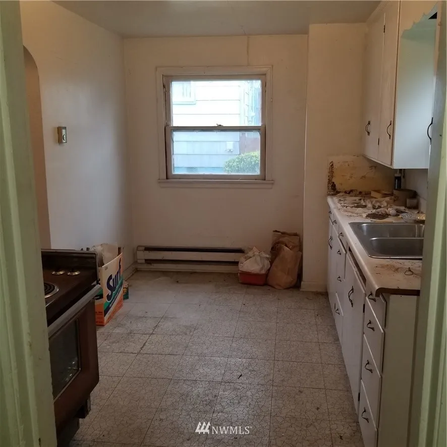 Bring your tools and imagination - this home has loads of potential. Original hardwoods in home. Two bedrooms and full bath on the main level with additional bedroom and office/den upstairs. Fully fenced with a detached garage. Use your creativity to bring the charm back to this home!