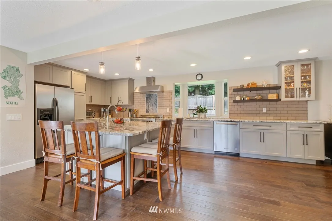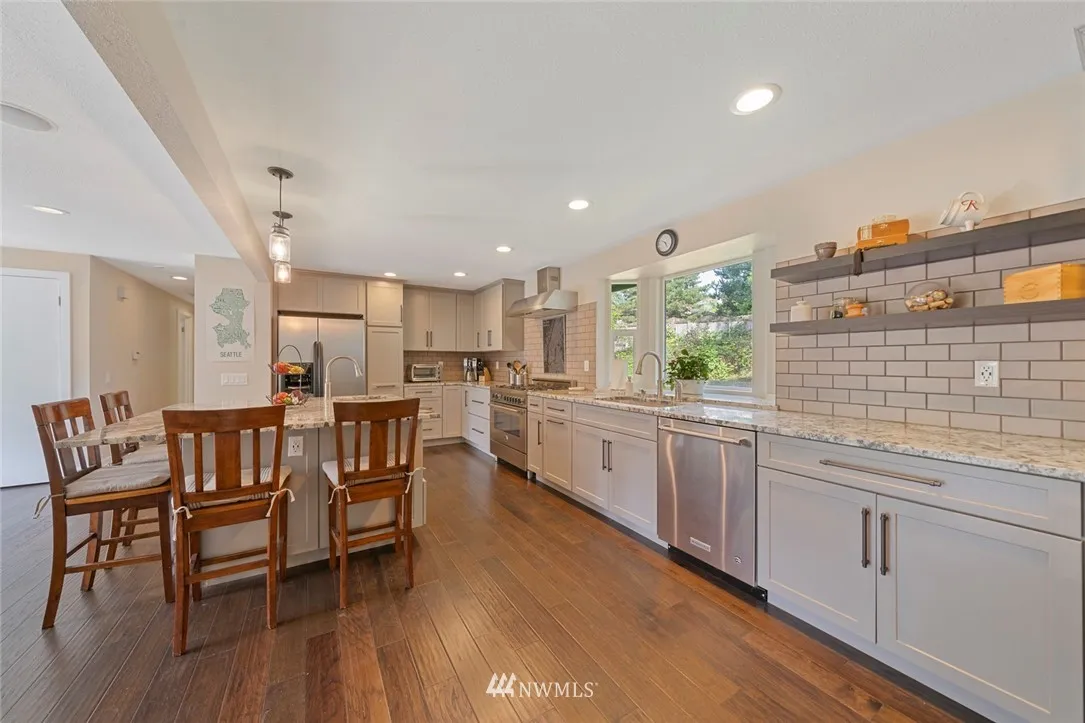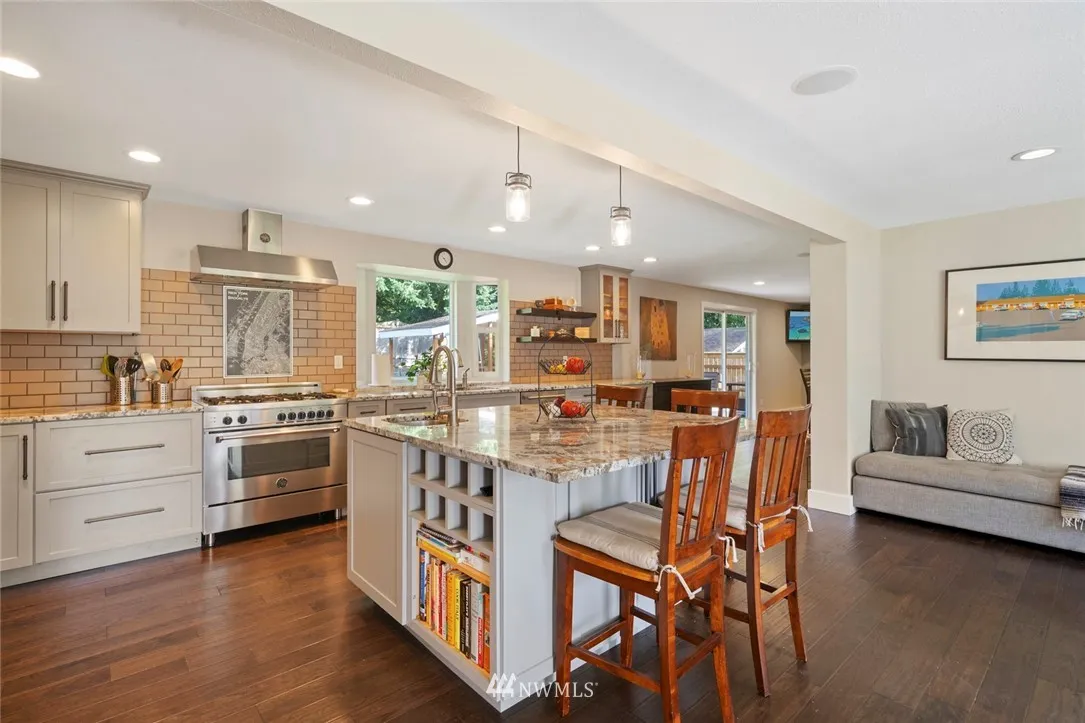 BACK ON THE MARKET!! With a brand new roof next week. Beautiful Rambler Entertainers dream!! Slide across the engineered hardwood floors and gather for the holidays in your luxurious kitchen,featuring 36" Bertoni gas range, extra thick natural stone counter tops and spectacular custom island. BBQ for the big game on your covered patio outdoor living area. Amazing wrap around yard with terraced garden will always delight. So many updates-new electric panel,furnace,plumbing,water heater and more!