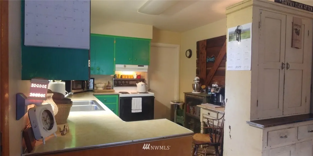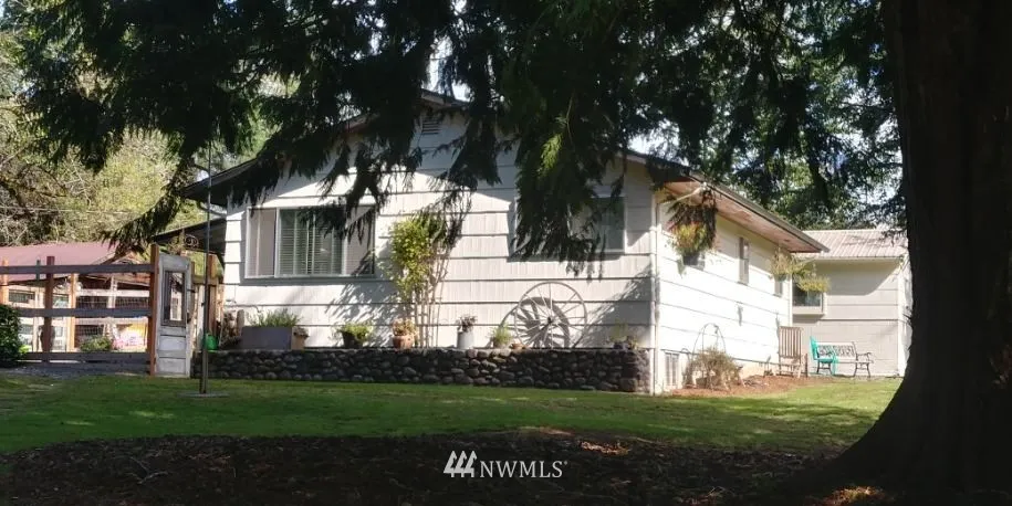 Cozy Country Charmer on 5 Acres! Surrounded by apple and cherry trees, grape vines, nut trees and berries, this 2 bed/1bath home brings the peace of nature to your door. 7 additional outbuildings, including a greenhouse, old barn, woodshed and woodshop. The vintage chicken coop was just restored and would make a great studio or Pub Shed. The converted shop-space is currently being used as an entertainment space and for over-night guests. Large yard(s) for get-togethers. Possibly Sub-dividable?