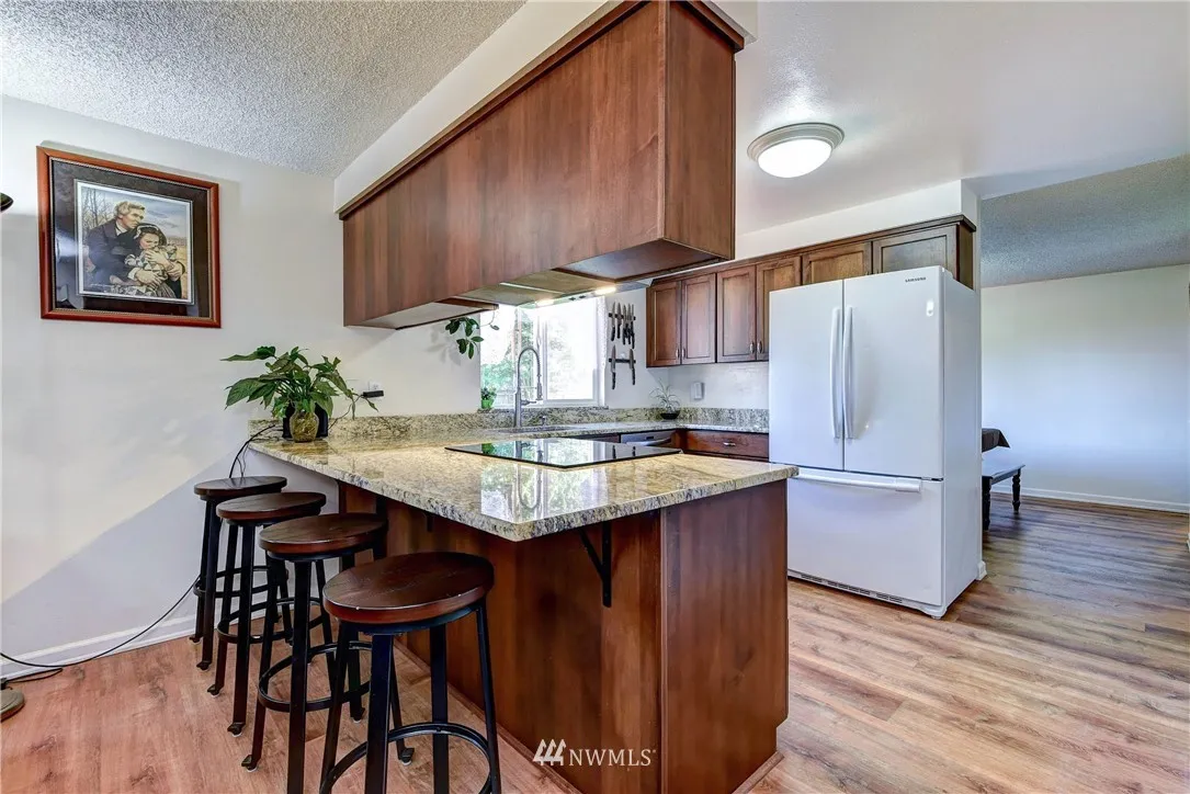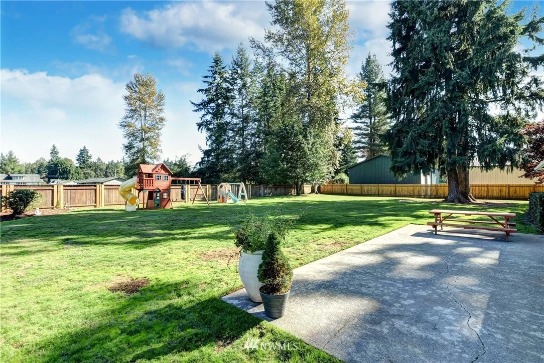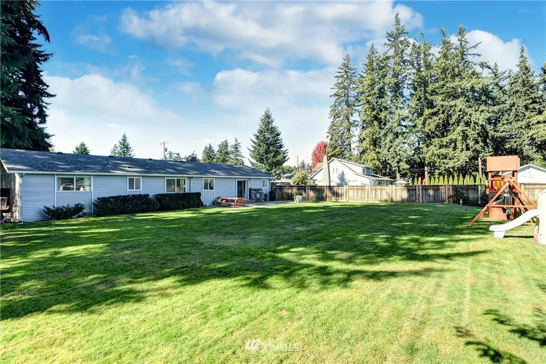 Immaculate RAMBLER on a beautiful 19,166 sq ft lot. This charming 3 Bedroom home features updated kitchen w/granite counters & soft closure cabinets. Bathroom has new shower/tub enclosure & waterproof vinyl plank flooring. Home features include freshly painted cedar siding & newer roof, heat pump, windows, waterproof vinyl plank flooring, & water heater. Level shy 1/2 acre, fully fenced, manicured lot provides privacy and plenty of room for future projects. Minutes to I-5 & close to Boeing Evtt.
