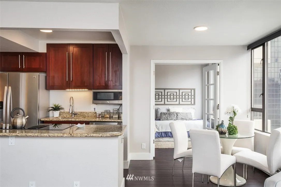 Magical city, snd & Lk Union views frm this beautifully updatd 2BR/1.75BA SW crner hme! Gorgeous hdwd flrs thru-out! Stunng open kitchn w/ss applcs & granite cntertops. Gracious LR & DR area leads to priv tiled deck to soak up the views. Glass frnch drs leads to guest ste w/WIC. Fabulous mstsuite w/WIC, deck & updatd mstbth. Amenities incl indoor pool/spa, sauna, party rm, gym, gst ste, wrap-arnd deck w/fire pit & BBQ's. Outstandg loctn - just steps to Amazon, WFoods, dining, pub trans & shoppg.