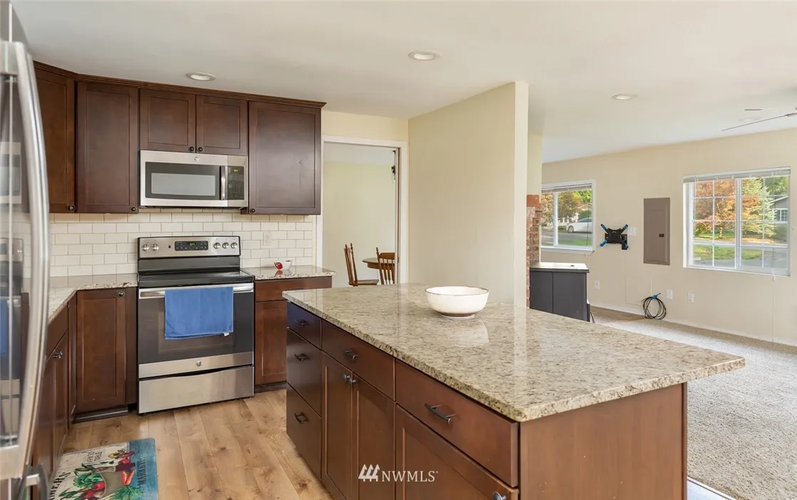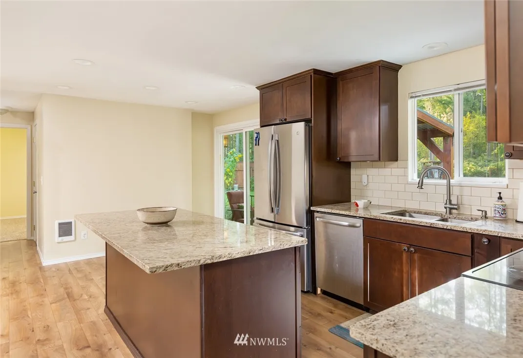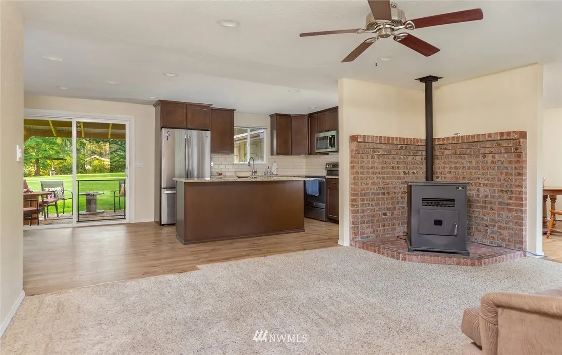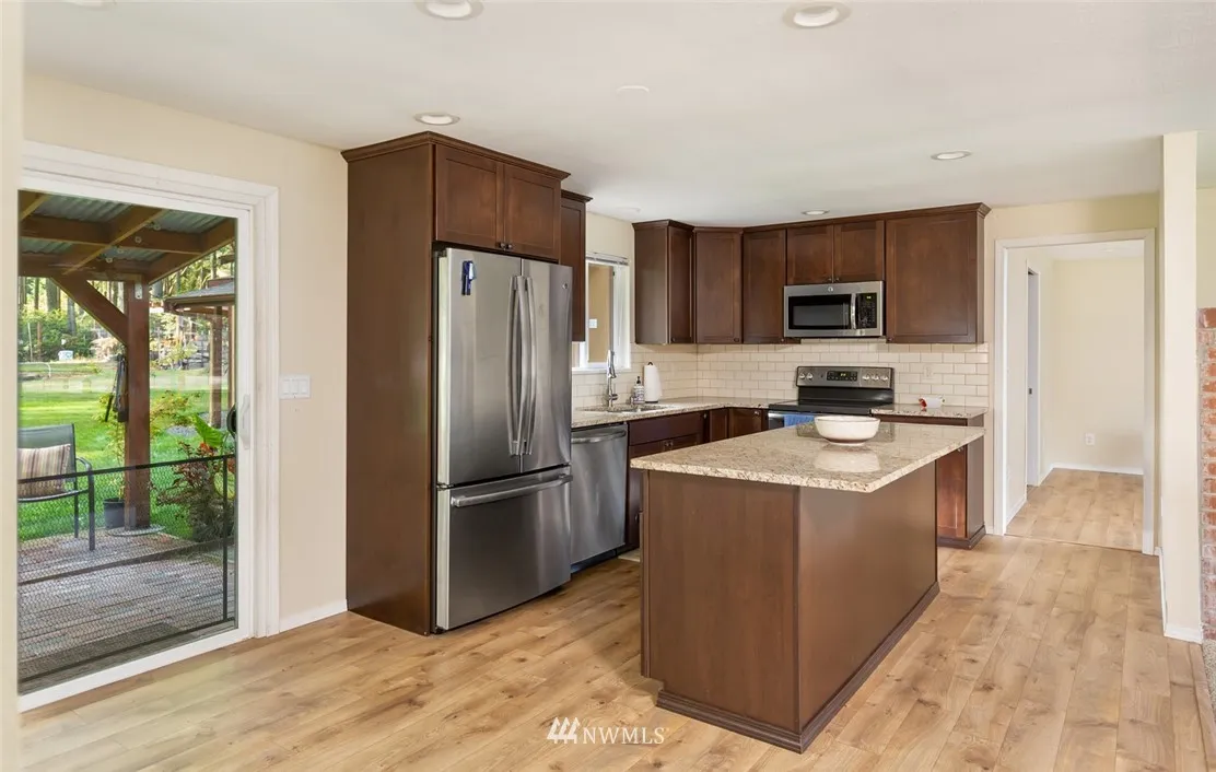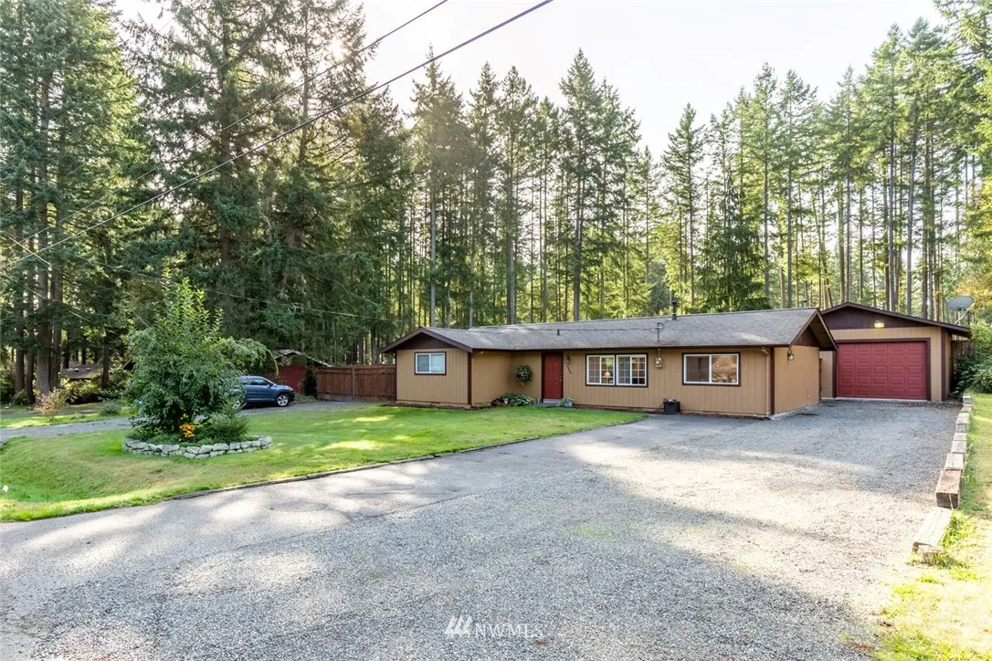 Exceptional 3BD 1.75BA Rambler on impeccable 1/2 shy acre. Large detached garage w/doors on each end. Lovely home updated w/gourmet kitchen, stainless package, granite counters, soft close wood cabinets. Open floor plan, 2 dining options, formal living & family room. Utility has new washer & dryer. Covered Patio overlooks beautiful grounds and fun fire pit is near out building. Minutes to Gig Harbor, Port Orchard & Beaches. 2 driveways on either side of house give access to huge fenced backyard.