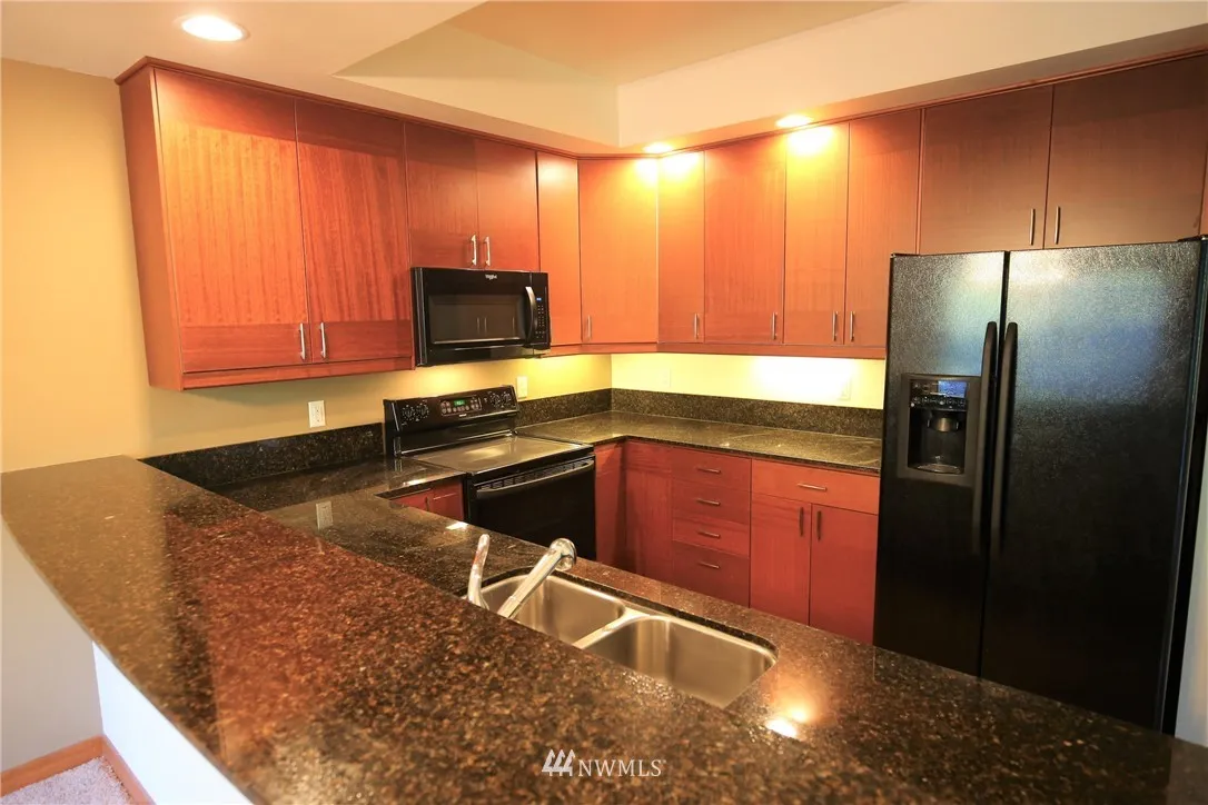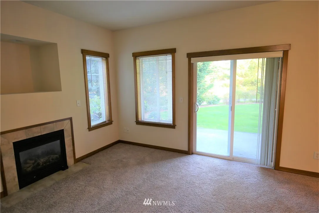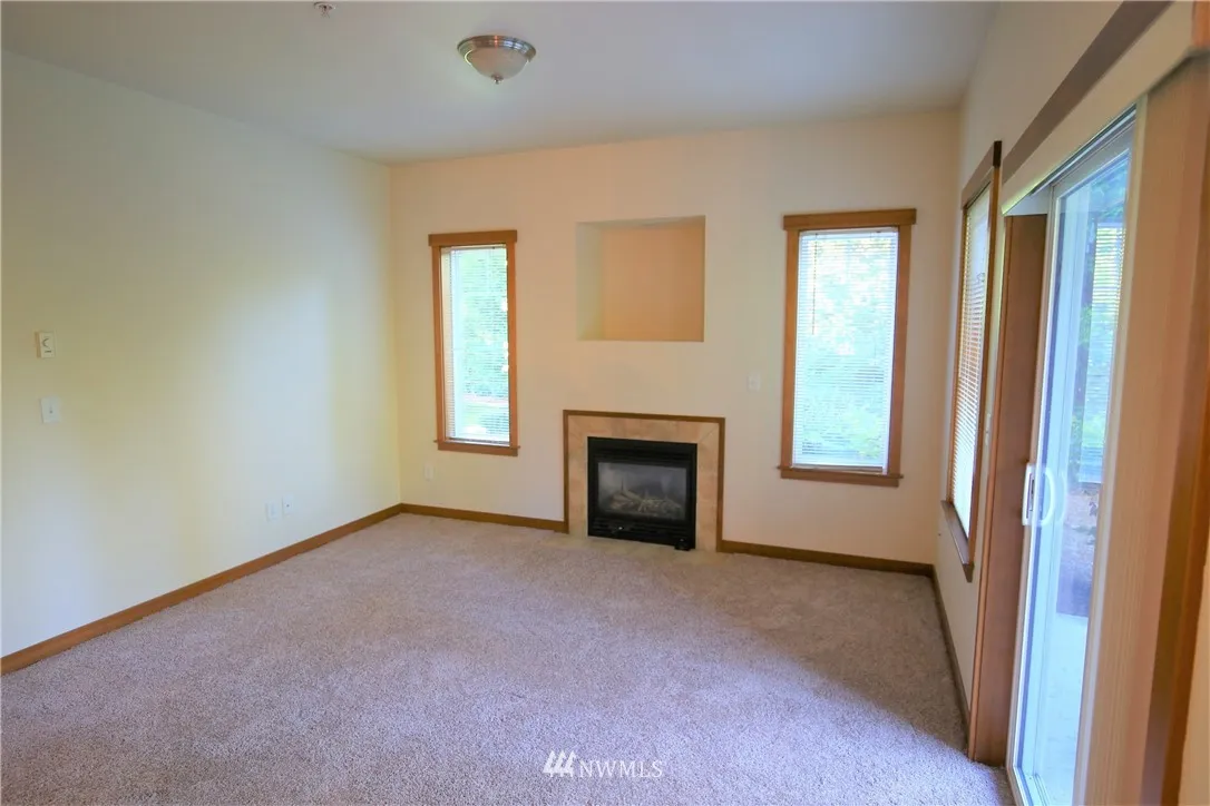 Fabulous ground level, no-stairs condo with covered patio overlooking lawn and trails. Unit has brand new carpet, gorgeous cabinets and granite countertops, gas fireplace, high ceilings, & comes with all appliances. Location is convenient yet very private with a secluded feel. Has assigned covered parking space. Master suite with walk-in closet & 3/4 master bath. No rental restrictions! Walking trails just out the door! Building and grounds are attractive and well-maintained! This is the one!