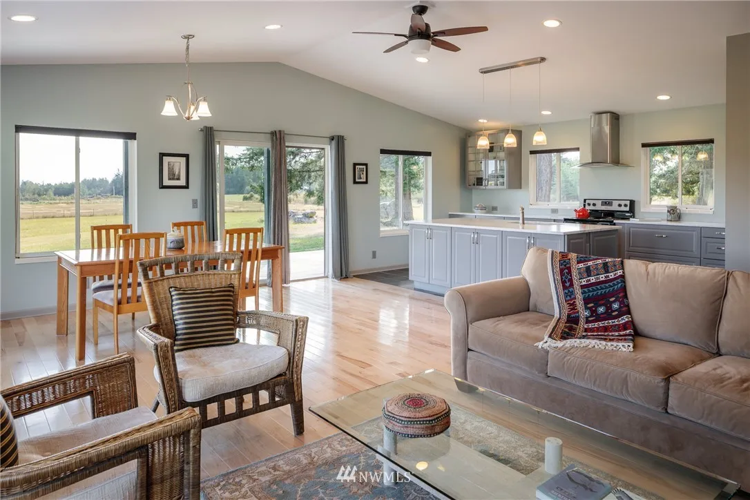 Territorial Pastorial Views from this sunny 29 ac with 2 BD, 2 BA well-built & maintained home. Spacious kitchen with marble counters & large island. Walk in tile shower & double vanity sinks. Bright & light. Big deck, partially covered. A good place to start with fully fenced pasture, sweet pond with 2 islands and plenty of room for a veggie garden & fruit trees. Excellent well. Located in the middle of the island, convenient to everywhere. Bring your critters & make this your place on Lopez.