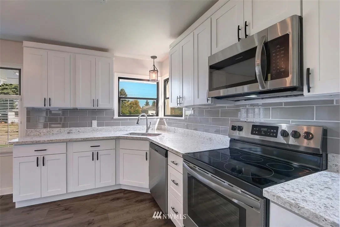 Wonderful North Tacoma rambler with bright, open design and welcoming living spaces. Updated kitchen and bathroom with shaker cabinets, stainless steel appliances, quartz countertops, and new tile. Spacious bedrooms and built-ins throughout. Quiet residential street, walkable to parks and schools. Cul-de-sac alley access creates additional privacy and large detached garage that is insulated and has power and room for shop space and storage. Additional off-street parking.