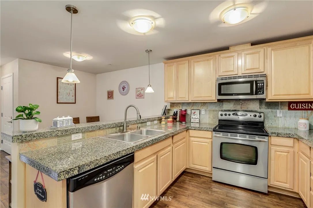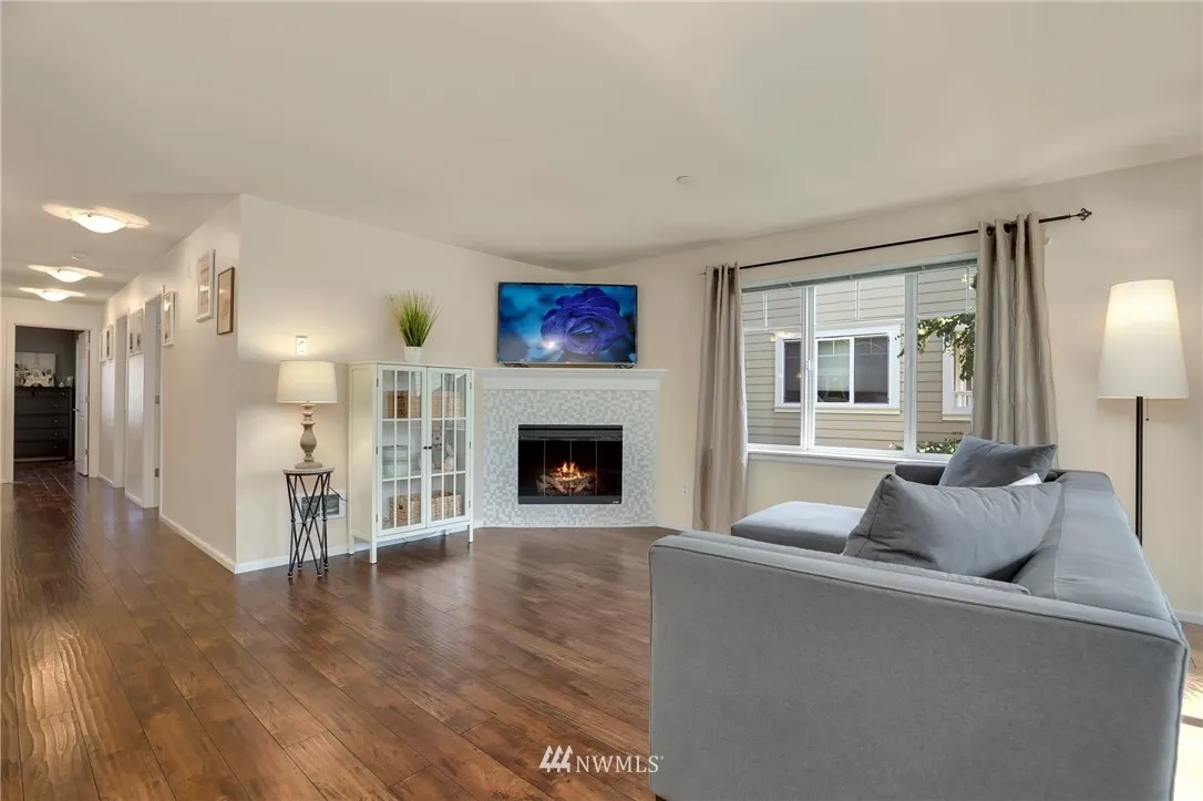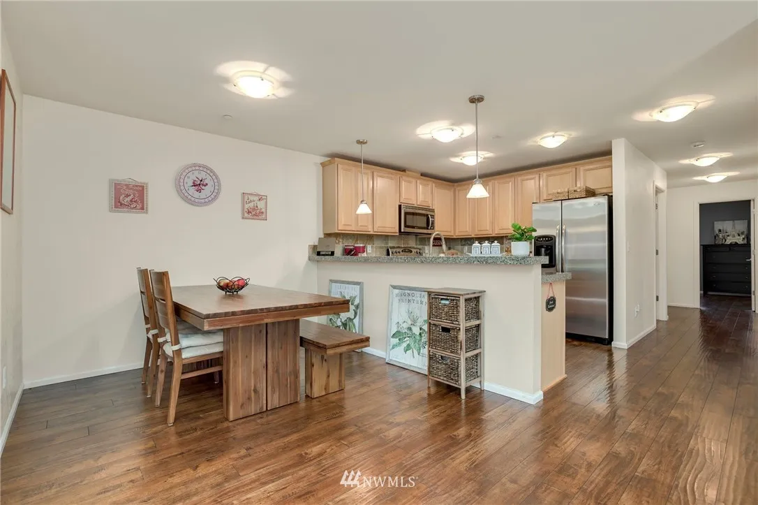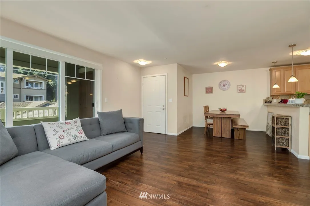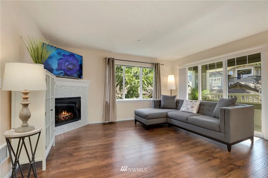 Delight in this well-maintained, rare, & affordable 3Bed 2Bath condo walking distance to Kirkland corridor, trails, restaurants & much more! The large open living/dining area offers an electric fireplace, wood flooring & an abundance of natural light beaming throughout. S/S appliances, granite countertops & extensive eating bar. Spacious Master w/en-suite bath & walk-in closet. Full-size washer & dryer. Large storage closet on deck. 3 blocks to the 405 & minutes to tech campuses. No Rental Cap.
