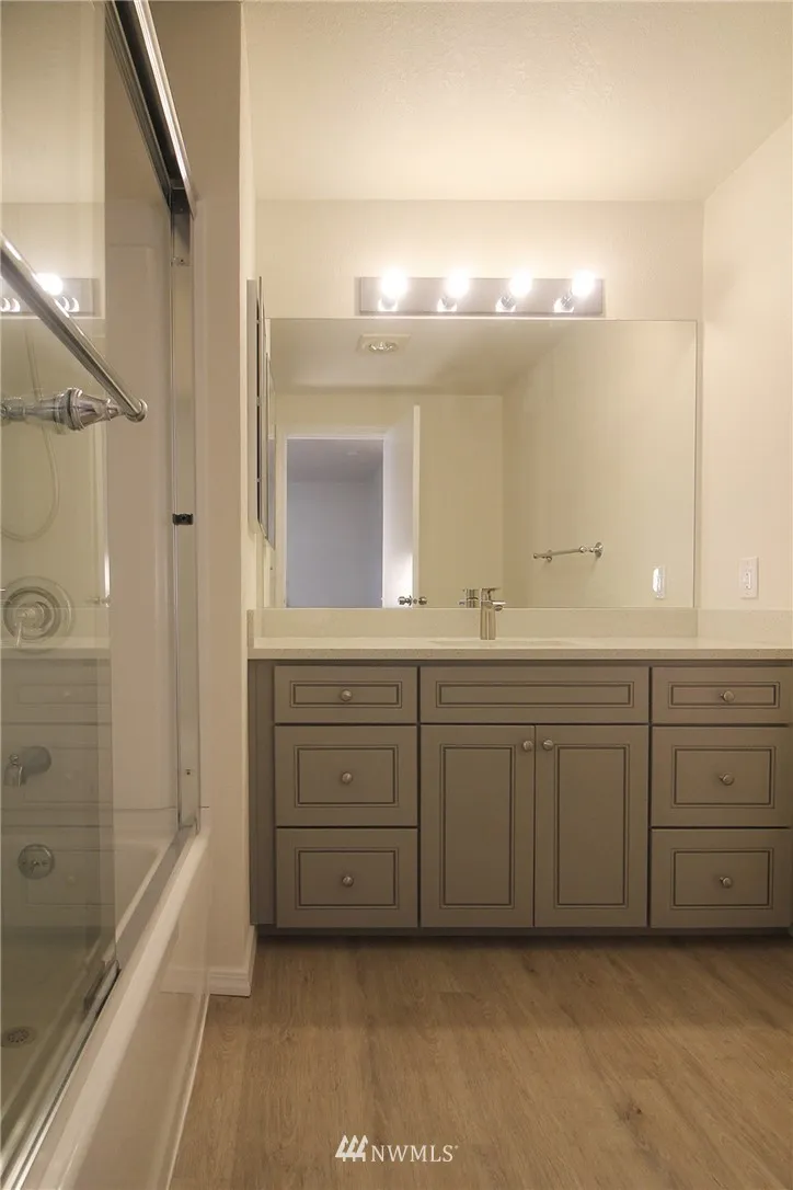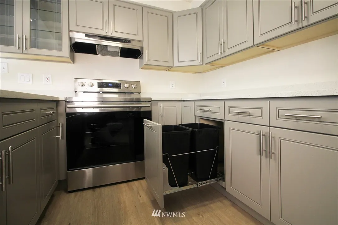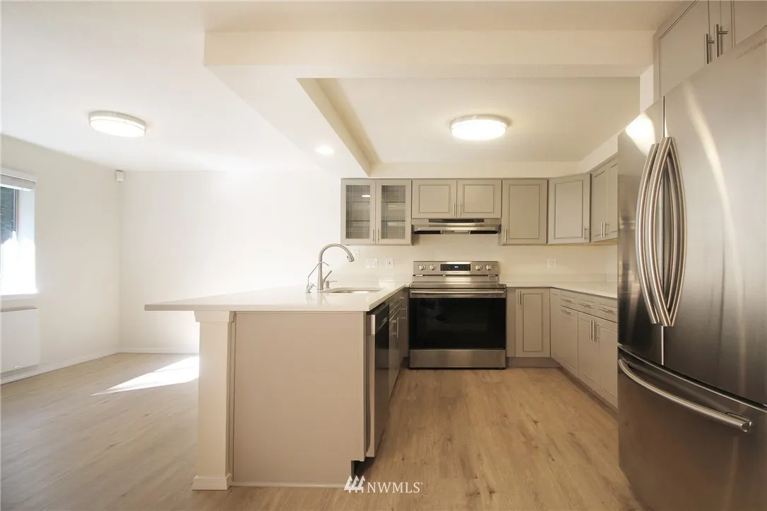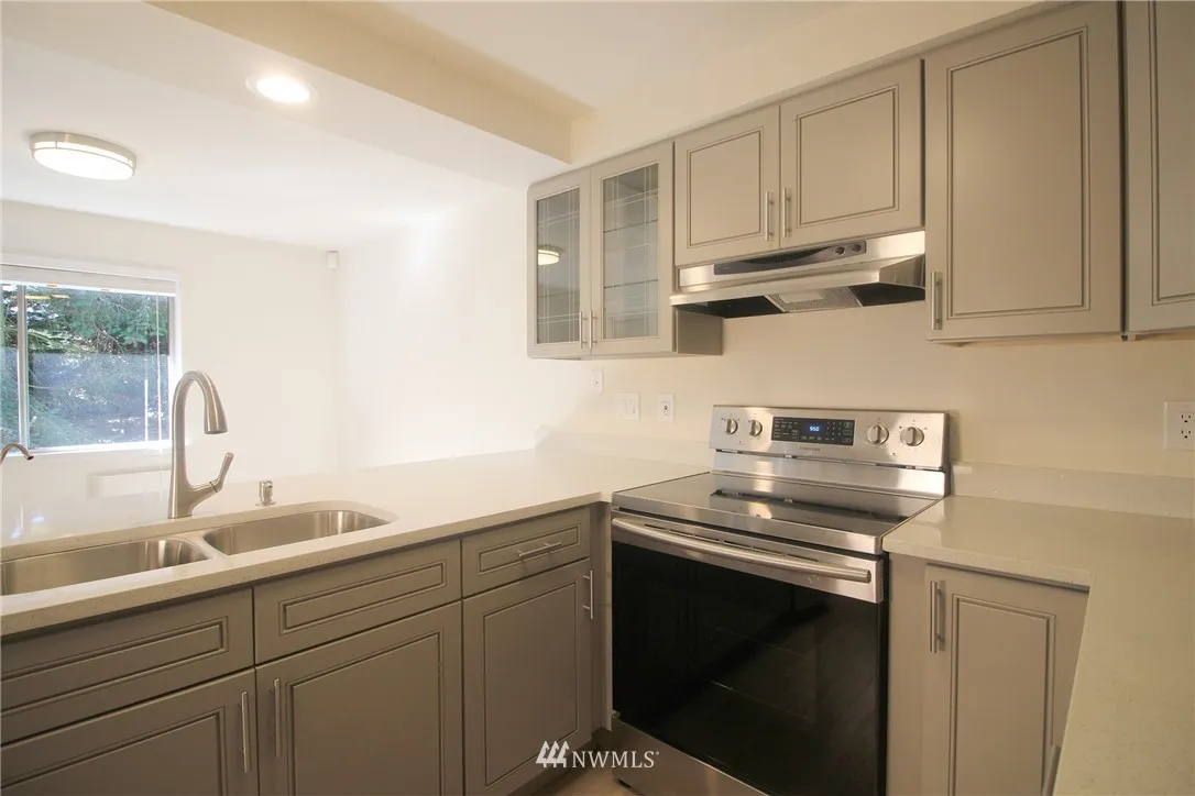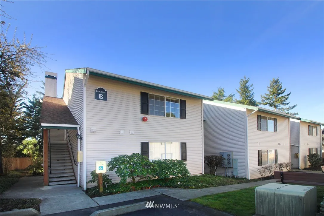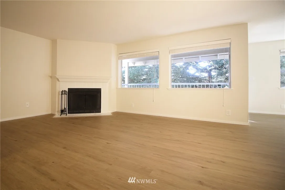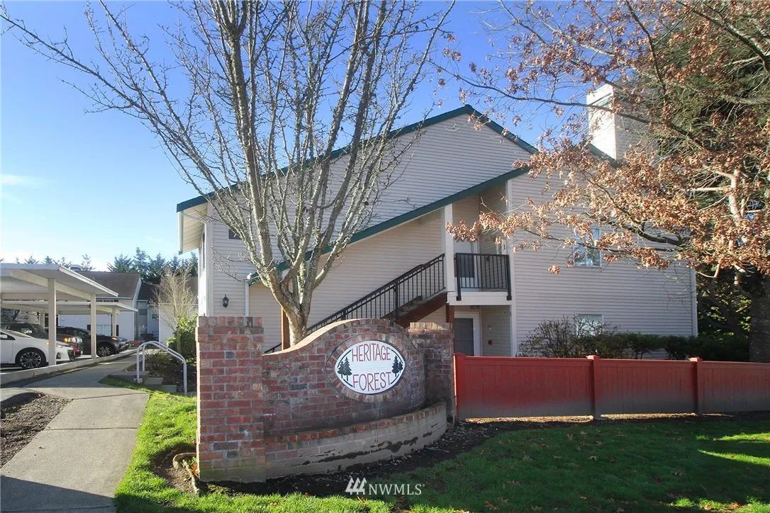 Welcome home to Heritage Forest Condominiums! This bright top floor, end-unit condo features 2 bedrooms/1.5 baths, wood-burning fireplace, in-unit W/D, and private patio. Completely remodeled from kitchen, living room, bedrooms, to bathrooms. Absolutely gorgeous! Great for first time home buyers or a great investment property with no rental cap. Desirable school district. Near post office, 24 hr fitness, QFC, Safeway and Walgreen’s.