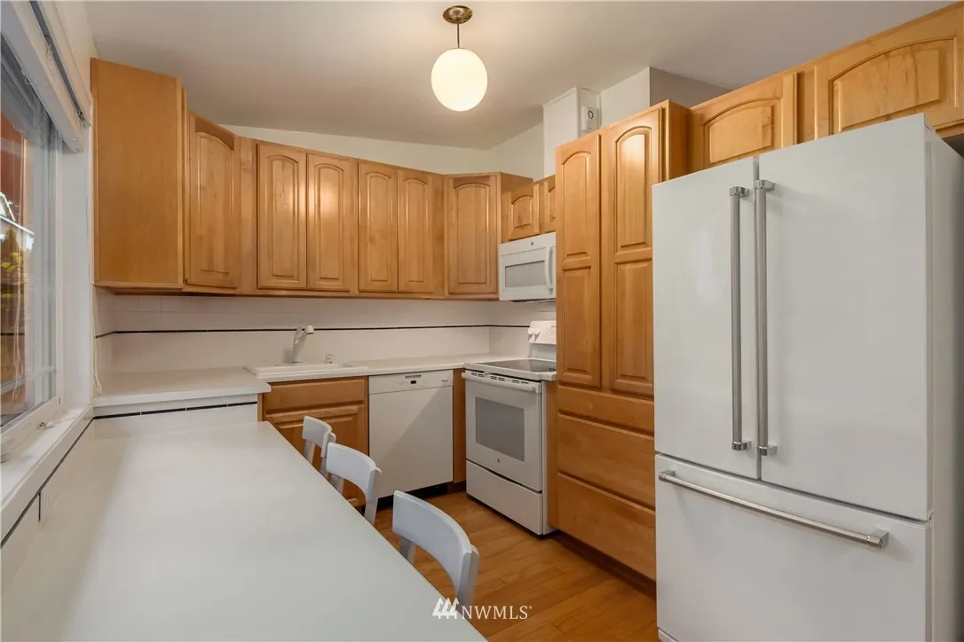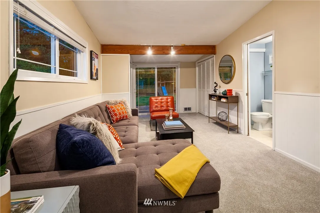 Mid-century living in a fantastic Bellevue location. Sun-filled living room w/vaulted ceilings, gas fp, and floor-to-ceiling windows. Easy flow between the kitchen, dining area and backyard patio. Convenient layout with all 3 beds on one end, and a fam room on the other. Hardwood floors throughout. Large level lot backs to greenbelt, surrounded by mature trees, w/space to garden, entertain and play. Top- rated Bellevue schools. Minutes to T-Mobile, w/easy access to I-90 and I-405.