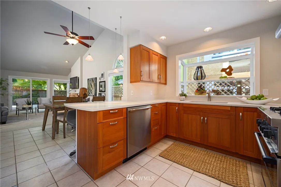 Totally turnkey & sought after rambler in Springbrook! New roof, new carpets, new interior & exterior paint & all on one level. Great room living w/vaulted ceilings, kitchen has new quartz counters & is ideal for entertaining. Large Master Suite w/walk-in shower & built-in closets with three-way mirrors. Office has French Doors, full size laundry room, deck w/pond & attached 2-car garage with shelving & workbench. Fab LW Schools, easy access to bus lines, new Totem Lake shopping & Juanita Beach.