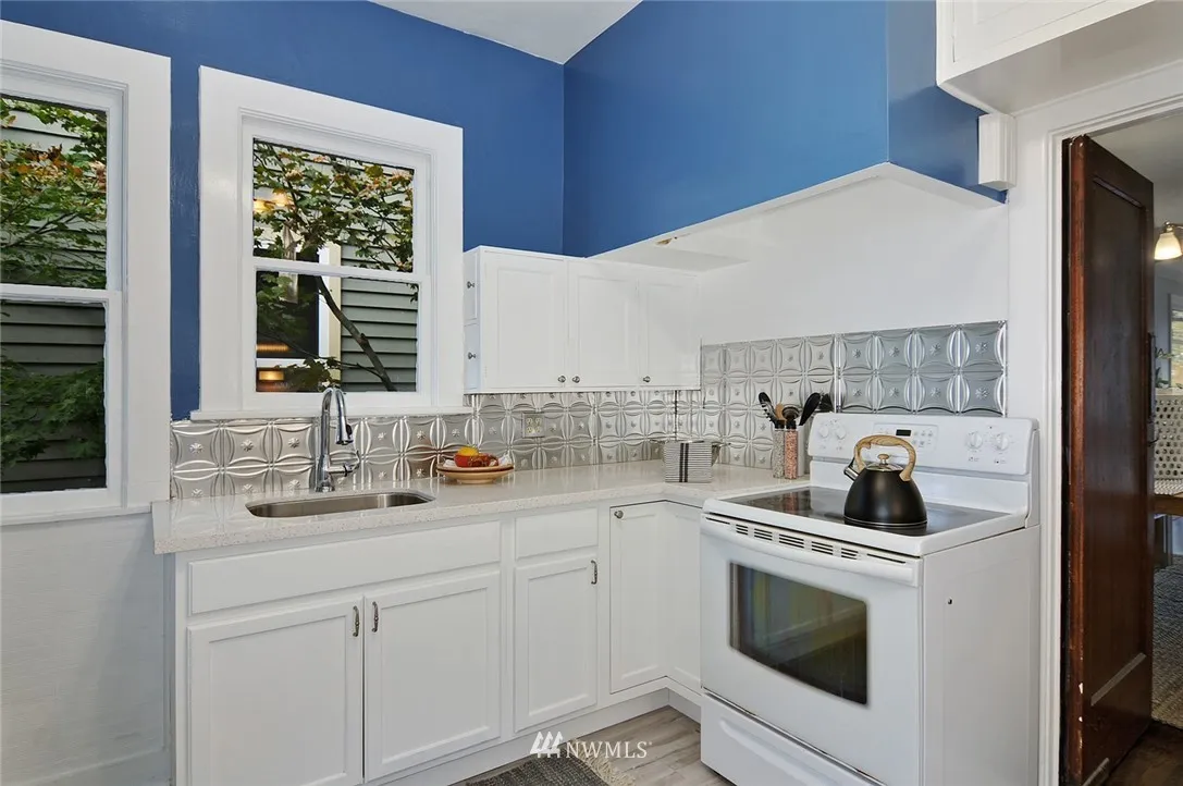 Located in the heart of Green Lake/Tangletown on a quiet street just blocks from lake & all of its many amenities: pool, pickle ball, tennis, cycle, cafes & popular schools. This classic 1910 farmhouse features a frml entry, beautiful hrdwd flrs, fireplace, 9ft ceilings, lg open living & frml dining room. Charming kitchen w/ new quartz countertop opens to south-facing deck & yard w/alley access (potential parking!). Updated bath, 2 bds on main, 2 bds up & a bsmt. Treasured & Excellent location!