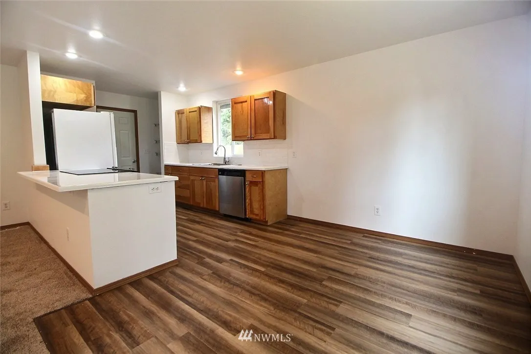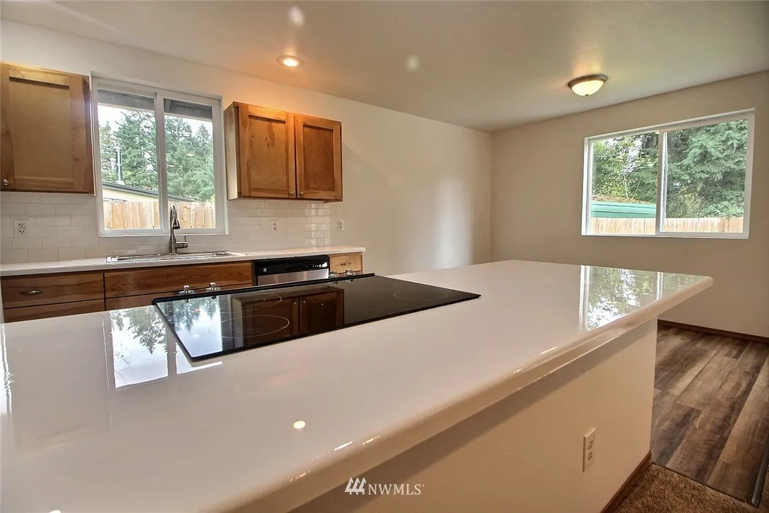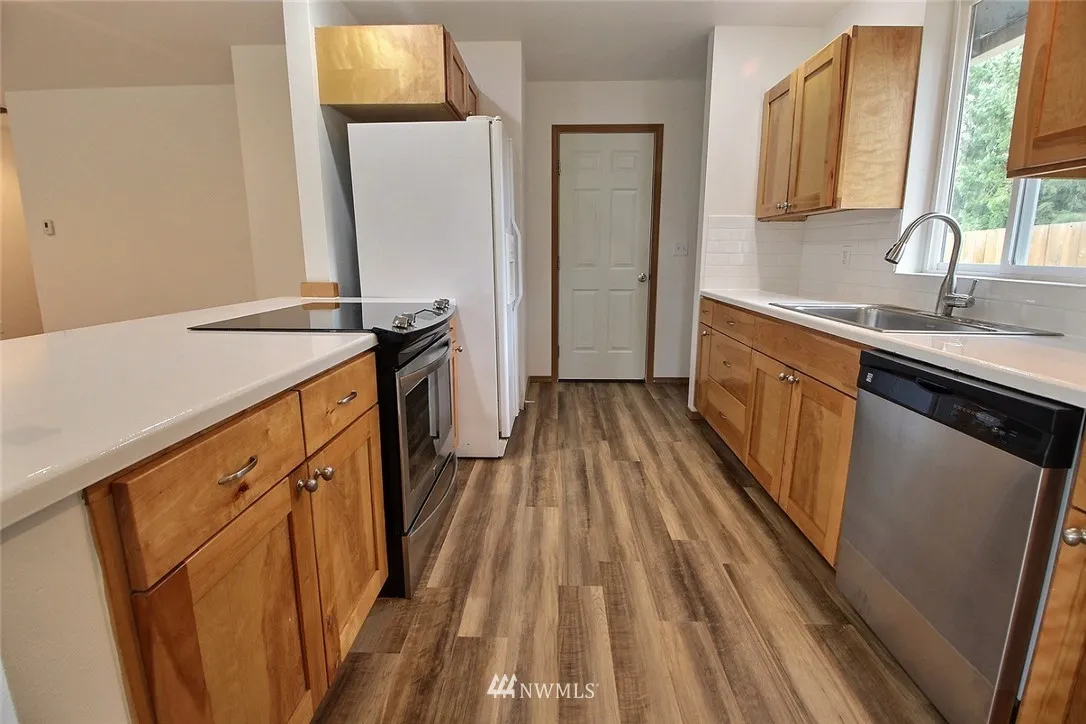 You do not want to miss this great, updated, open-plan 3 bed, 1-3/4 bath rambler! This home features fresh paint, beautiful new flooring throughout, Kitchen with new epoxy countertops, refrigerator, stainless flat top range & dishwasher, a Master suite with walk-in closet & en-suite. 2-car garage & a large fenced backyard that backs on to a natural greenbelt. Home sits on a quiet street in this nice neighborhood while still having easy access to Canyon Rd, Freeways, JBLM, shopping, restaurants.