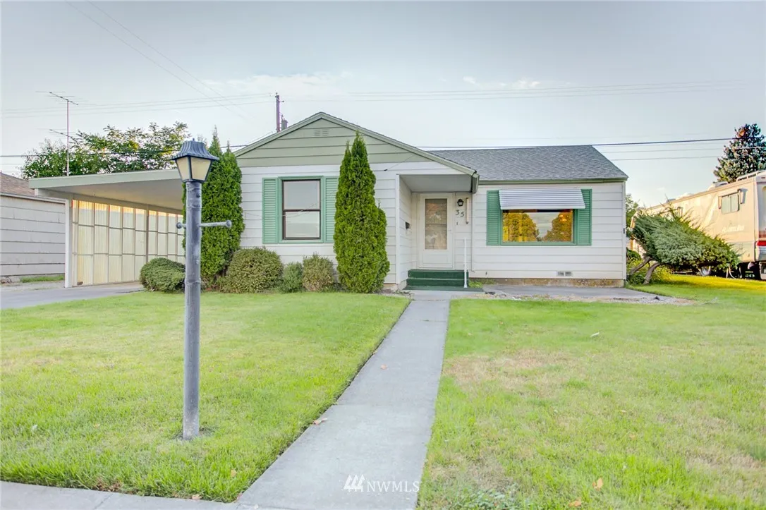 Green Gables charm in this darling 3 bedroom, 1-1/2 bath, just across the street from Columbia Ridge Elem! Orig. hardwoods under carpet, fam rm with working fireplace, oodles of kitchen cabinets. Carport over-sized, both width x depth, can easily park 2 vehicles tandem. Dbl pane windows. Metal siding. Underground sprinklers. New hot water htr. All appliances stay. Bonus sq ftg not incl above: 1) Lg unheated storage rm behind carport w/electricity, insulation; 2) Lg encl patio. See virtual tour!