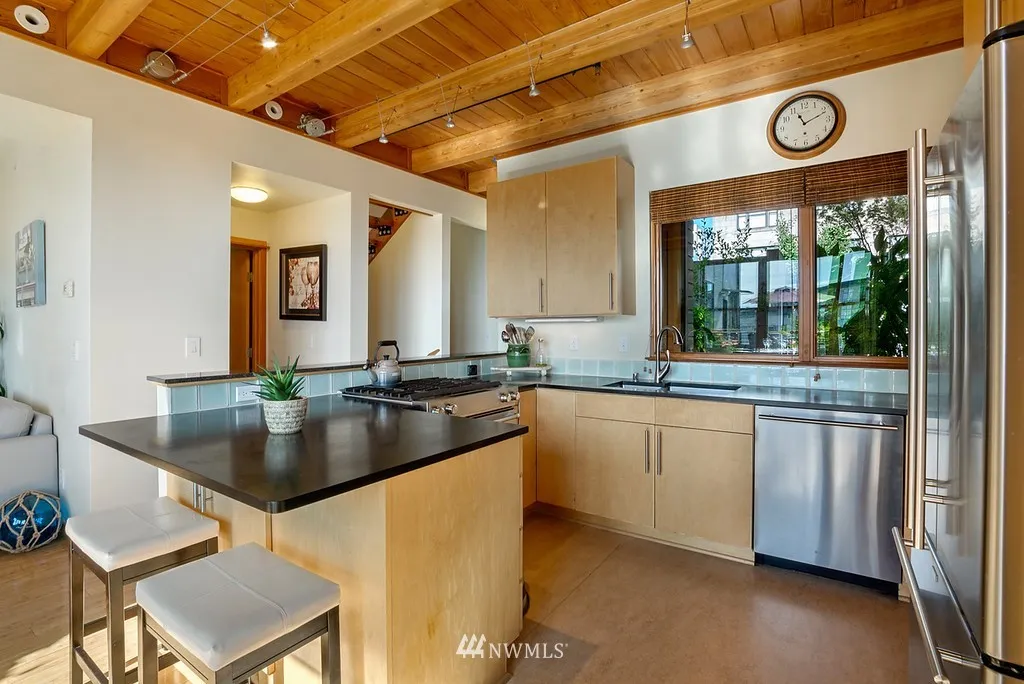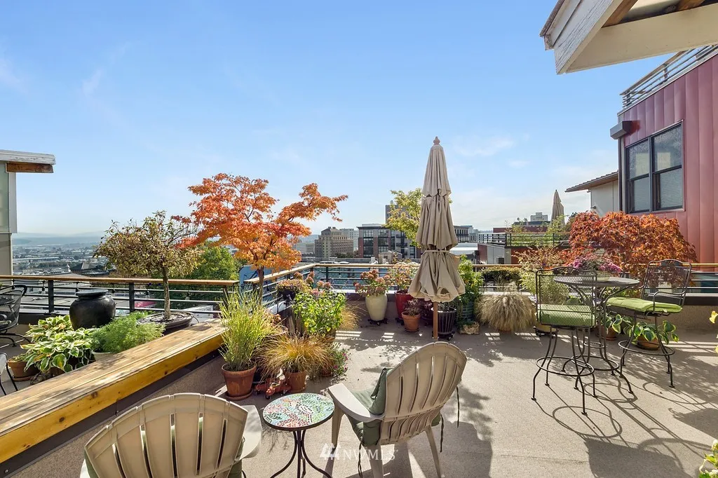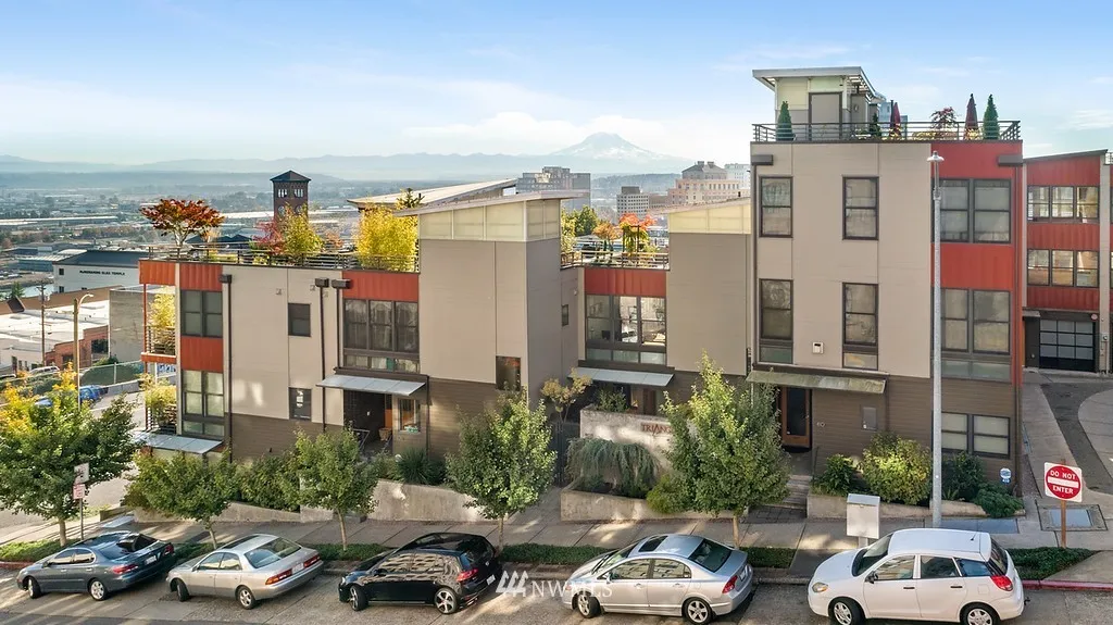 Modern living in amazing Downtown location! Enjoy panoramic views of the city, sound & Mt. Rainier from your own private rooftop deck, perfect for entertaining. This townhome has incredible views from each floor. Warm and welcoming exposed beams and wood floors. Master suite, 5 pc. bathroom, walk-in closet. Home features gas fireplace and heated floors downstairs. All appliances stay + washer & dryer. Easy walking distance to restaurants, shopping and future light rail. Don't miss out!