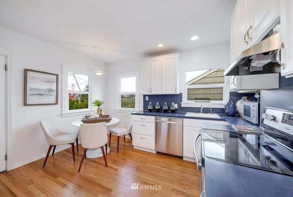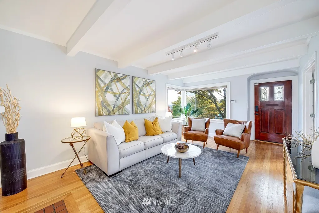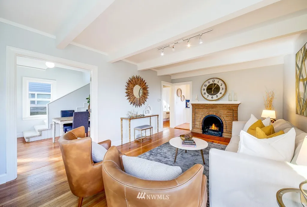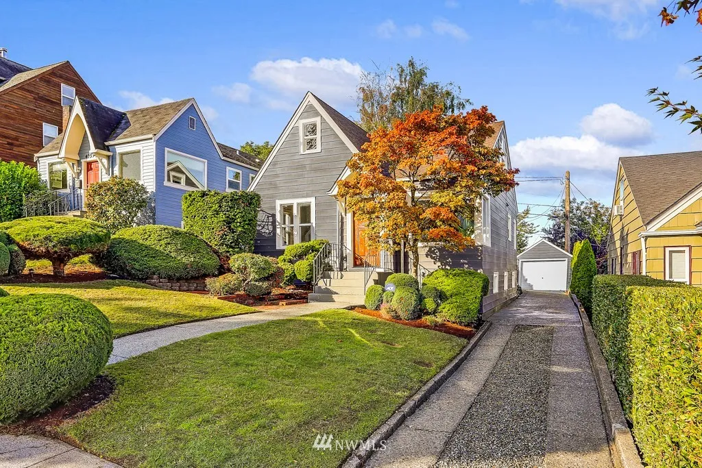 Storybook Tudor with big City & Sound views blends timeless details with modern touches. Freshly painted inside & out, this 3 bed/1.75 bath home features refinished hardwoods, formal living room w/box beam ceiling & stately fireplace, French doors and an updated kitchen. Stunning full floor master w/walk-in closet & panoramic vistas + a fabulous basement with family room, great storage & ¾ bath. Private backyard w/entertainers' view deck & detached garage. Fantastic location with 82 walk score!