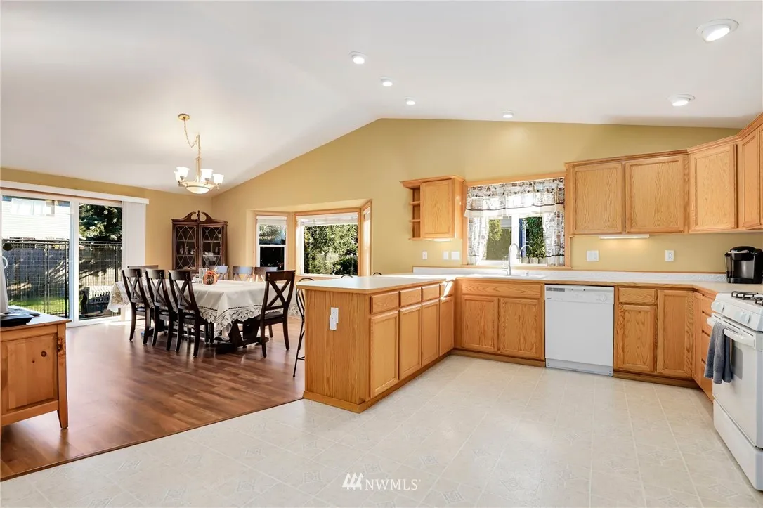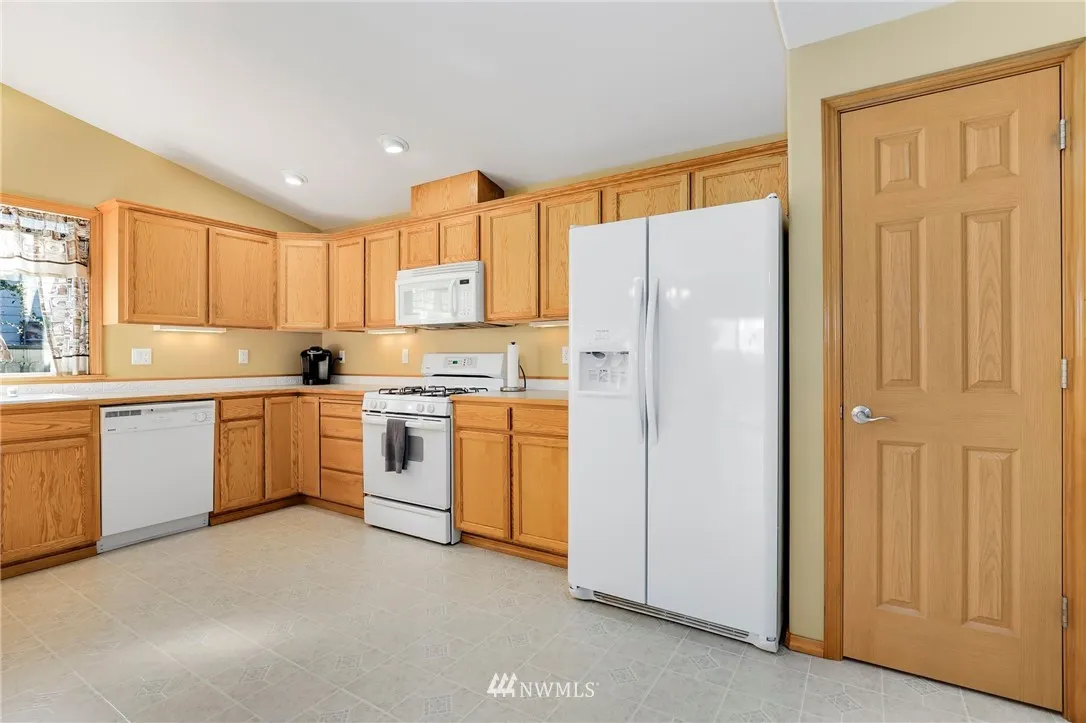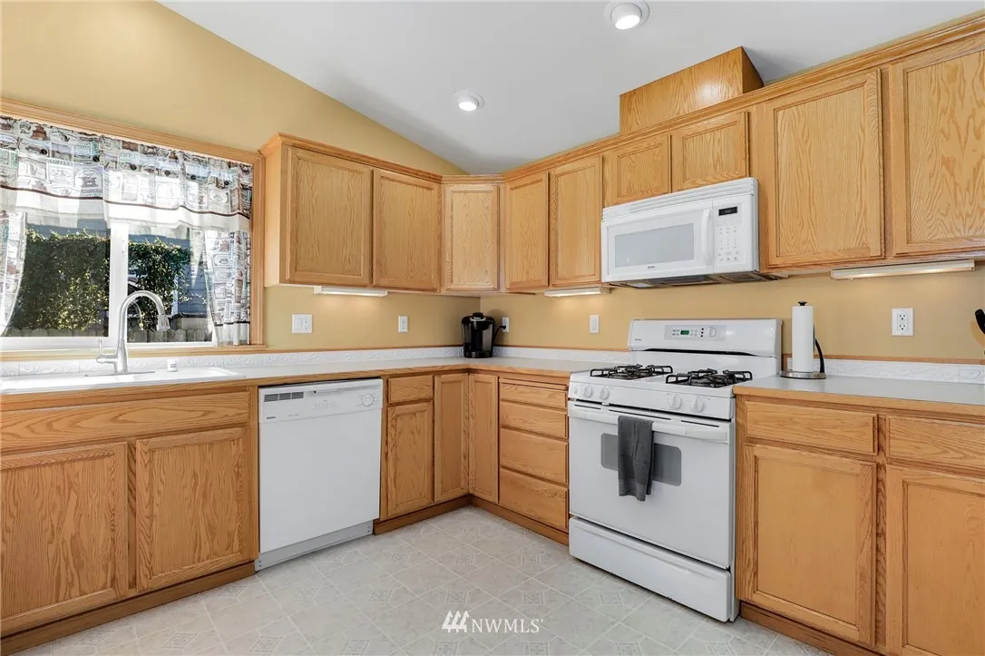 Spacious 1,558 sq.ft. rambler w/ desirable floor plan on large fully fenced lot in beautiful Walnut Ridge. Flowing great room layout w/ vaulted ceilings & ample natural light. Large kitchen w/ lots of cabinets, bar seating & dining room w/ bay window. Living room w/ cozy gas fireplace. Oversize master suite w/ attached bath & walk in closet. Full laundry. Rear patio for entertaining. Huge 3 car garage w/ drive through bay! Conveniently located to I5, Hw9 & Smokey Point. A must see home!