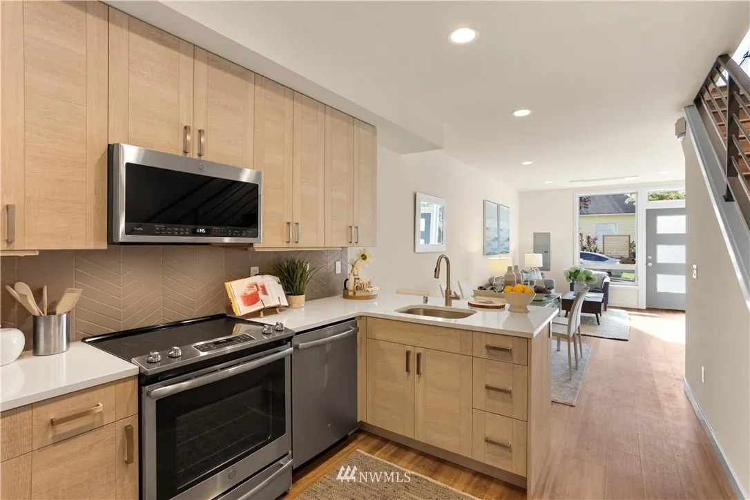 Creative new design allows for efficient living on two levels. Enter into the living room and enjoy the nice bright open space. Modern kitchen with upgraded appliances and room for friends. Upstairs are two bedrooms, including the master suite and one shared full bathroom. Well thought out and handsomely detailed. On the upper level there is a wonderful, sunny South facing covered deck perfect for yoga or indoor/outdoor work space. Sharp!