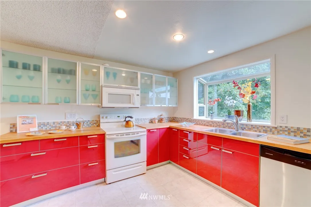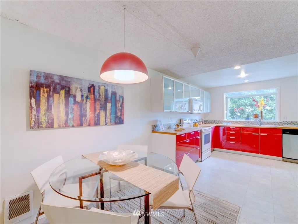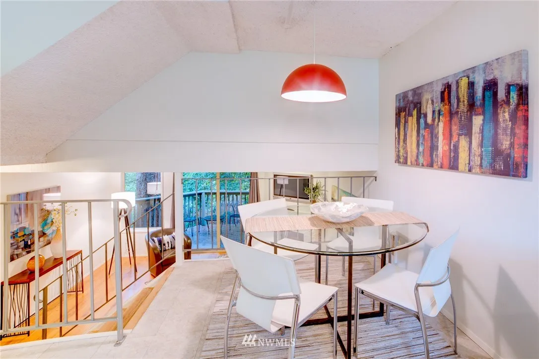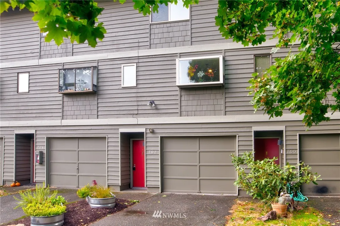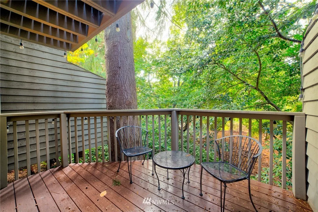 Fun unique townhouse in a great location! Multiple levels, 2 decks, and vaulted ceilings all make this home feel much larger than it is. Modern updates include new kitchen, baths, and flooring throughout. New appliances, with washer & dryer conveniently located on bedroom level. Very private and quiet park-like feel. Located an easy walk to grocery, restaurants, coffee, parks, express bus to downtown and more. Bonus large storage space at the back of garage. Small community feel to HOA.