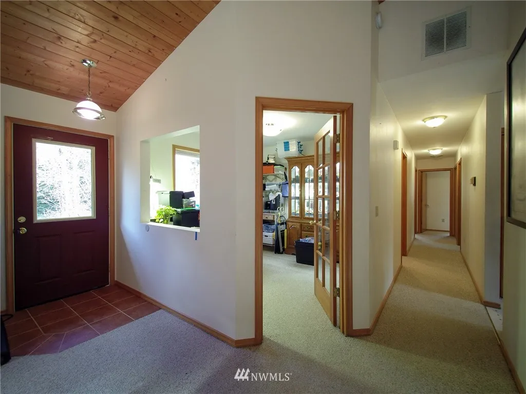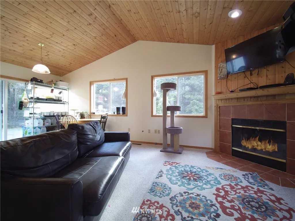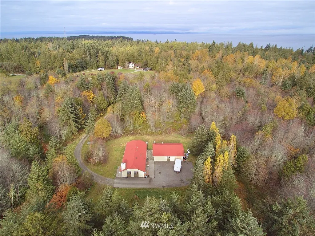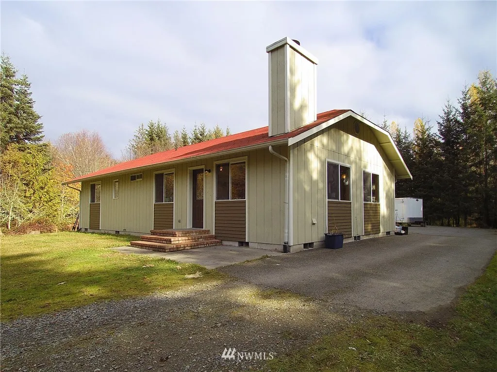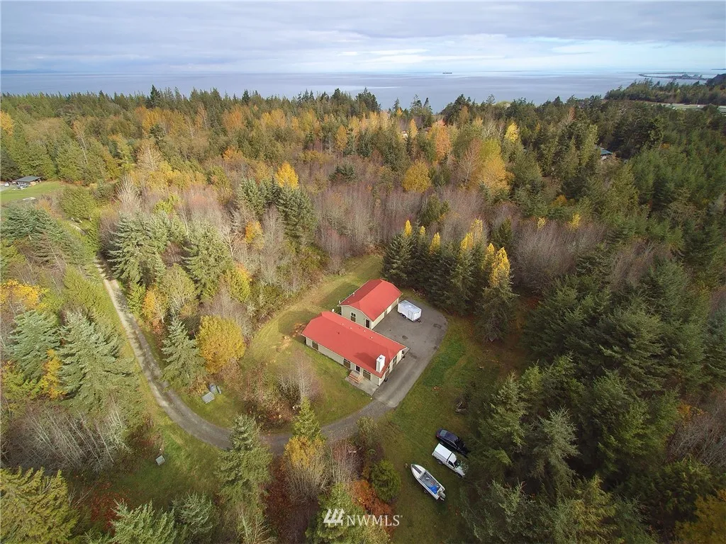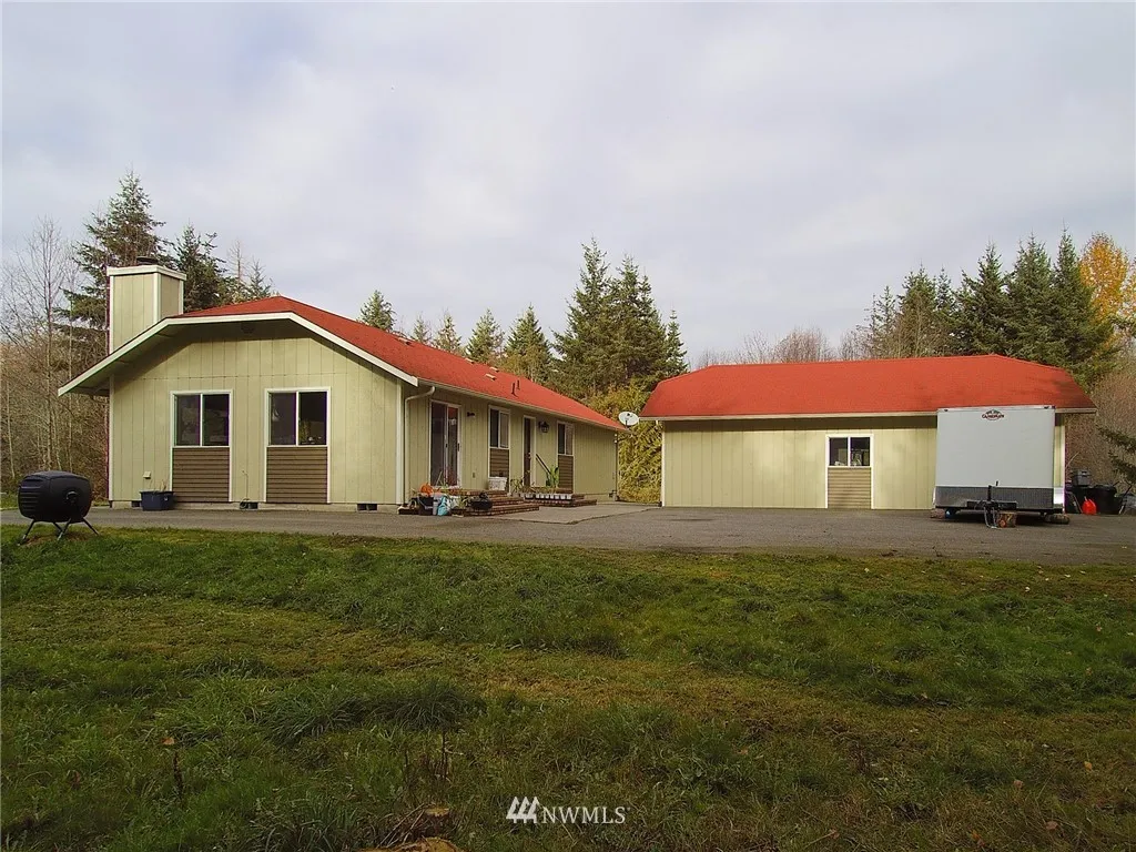 Nestled into nearly 5 acres of forest, this home feels like a cabin in the woods and enjoys a level of privacy that is hard to come by! Charming single-level with features including vaulted wood ceilings, fireplace, galley-style kitchen, office, master ensuite, and 2 additional bedrooms. The large 864 sqft detached garage is heated with propane heaters and has workshop space, workbench and a 1/2 bath! Plenty of paved parking space for a boat, trailer, or RV + RV dump on the side of the garage.