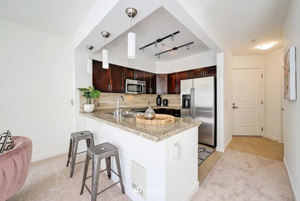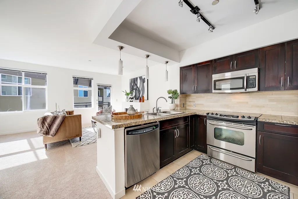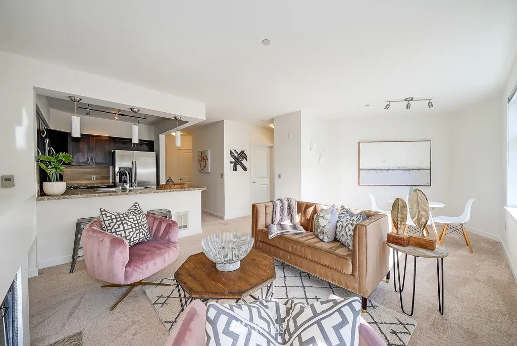 Be in the heart of it all! Welcome to this better-than-new bright upper floor unit with a premium open floor plan. Sparkling clean kitchen with oversized entertaining bar, new paint and carpet, W/D, and a perfectly proportioned bedroom. Enjoy early evenings on your southwest-facing deck and then hit the lively Ballard nightlife just steps from your front door. Great Canal Station amenities include concierge, lounge, business center, fitness center, patio w/ BBQ, sauna, hot tub. Pet friendly!