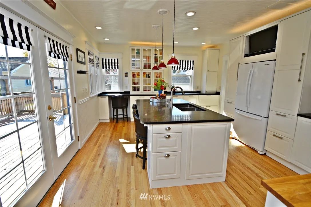 Wonderful 1920's craftsman bungalow has all the modern conveniences yet the original charm. Original wide mill work, molding & trim detail. Sunny corner kitchen has been expanded with tons of cabinets. Quartz counters, pullouts & extras. Every cook will appreciate the well designed kitchen. Beautiful yard surrounds this classic beloved home. Koi pond in front yard adds to the charm. System upgrades include electrical, furnace, air conditioning & appliances. Make this your home for the holidays!