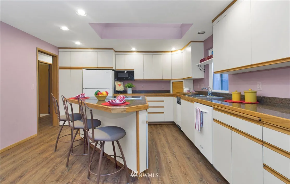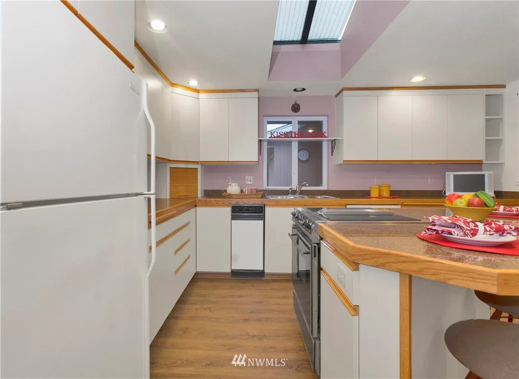 Love mid-century homes? Don’t miss this awesome 1960 1½ story home on Olympia’s westside! Large kitchen with center island, Jenn-Air range, trash compactor, granite tile counters; formal living room; dining area w/gas log fireplace; family or bonus room w/woodstove; master suite was added on upper level with mini-split heat pump; Murphy bed in one of two main floor bedrooms; laminate flooring in main living area. Generous storage; fenced back yard; Close to schools, shopping, medical and more!