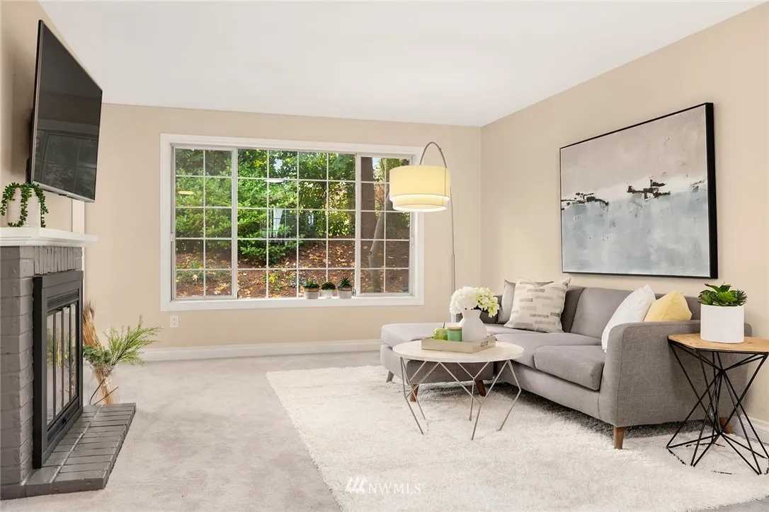 Beautifully remodeled private and quiet condo located in a complex that backs to natural greenery for year-round views. Newer paint, carpet, appliances,updated bathroom.Airy kitchen w/granite slab & stainless steel appliances, newer floor. Spacious living rm w/wall of windows. Generous master w/private vanity & sink & sep access to bath AND back deck. Individual garage w/opener & two more parking pass. Walk to Newport High School, Factoria Mall. Minutes from I90, 405.