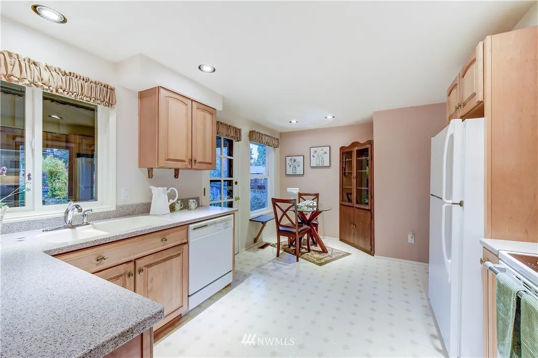 KIRKLAND CUL-DE-SAC GARDEN HOME Perfectly improved on larger/sunny/irrigated/private lot. Welcoming w updated kitchen, fresh paint, newer windows, 3yr old roof & H20 heater. Additional enclosed deck - glassed in winter & screened in summer. Lower level can double as 4th bedroom or guest area. Lg garage, hard-wired w generator included + AC. Improvements r top-of-the-line. Bountiful berries, perennials & everything a gardener would appreciate. Near shop/hospital/frwys/walk to elementary school.