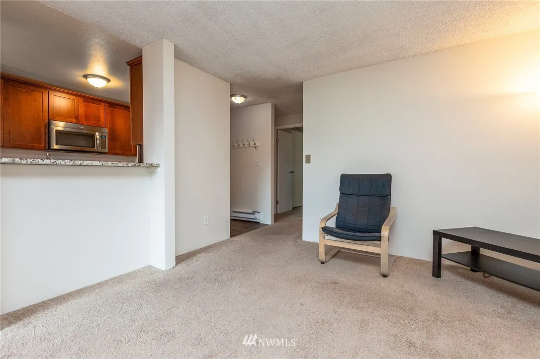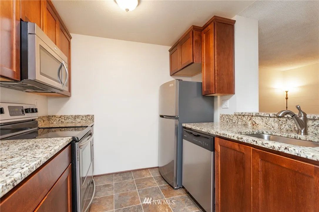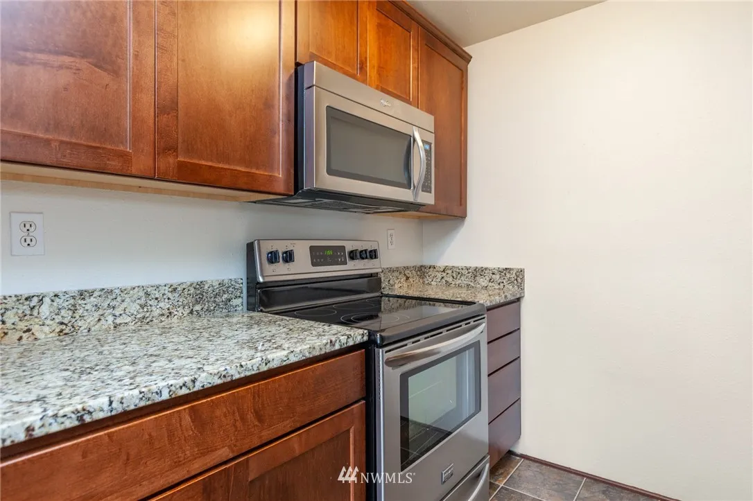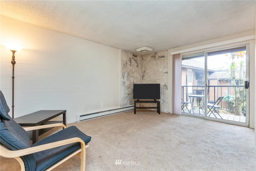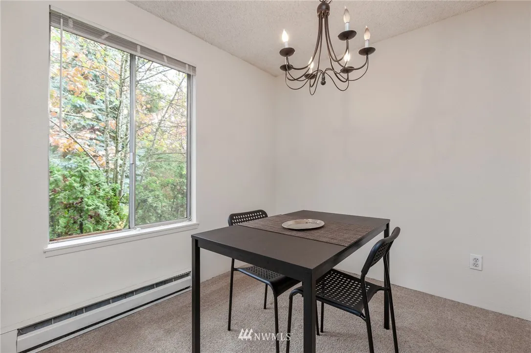 Beautiful and cozy condo in wonderful condition and ready to enjoy! Second level end unit with back patio that leads to grassy common area and private storage. Ample work space & cabinetry in the pleasant kitchen, all appliances stay. Quiet, wooded complex centrally located for convenience to shopping, bus lines, restaurants and freeway access.