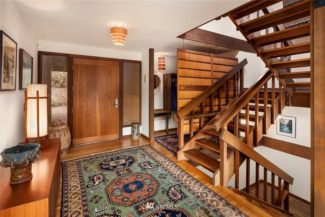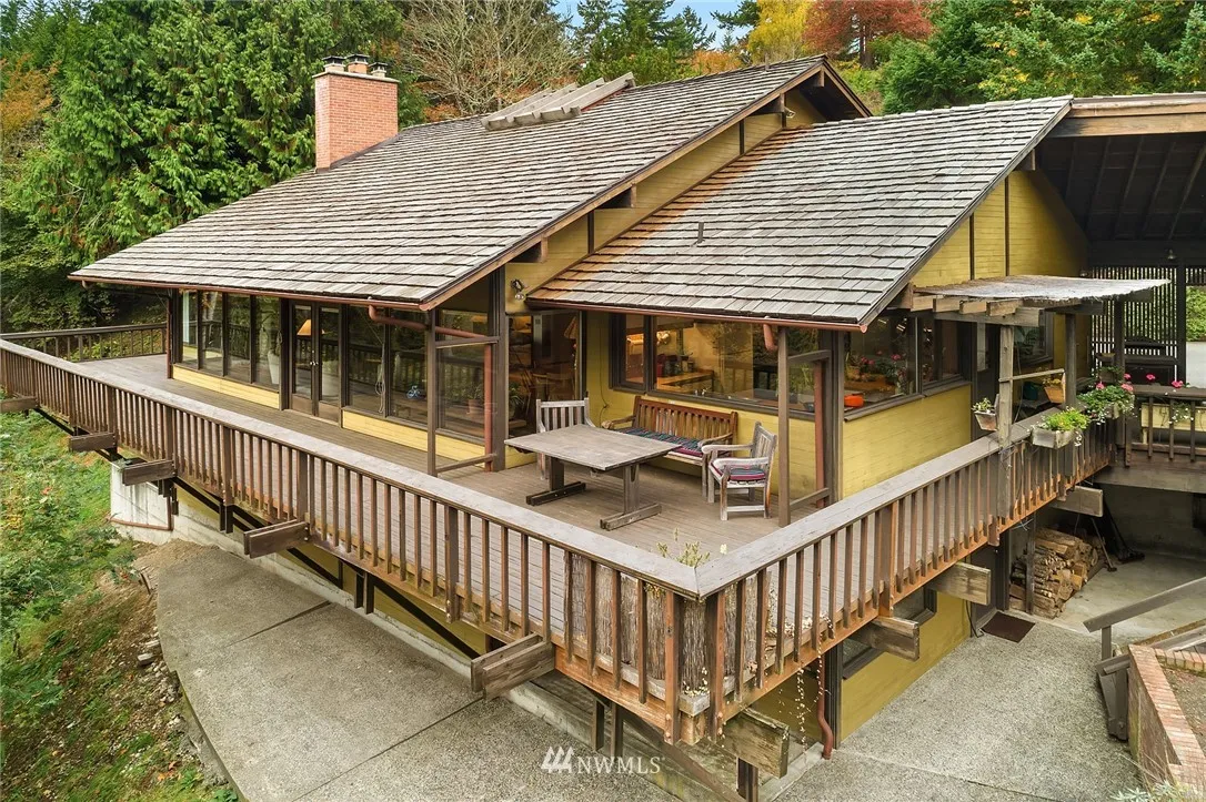First time on market for this architecturally significant home, custom designed by prominent local architect Gene Zema, one of NW Contemporary greats. Seamlessly integrated with land, impeccably maintained, pride of ownership. Comforting aesthetic integrity wraps around & welcomes. Open floor plan, high ceilings, tall windows, abundant light, craftsmanship, exposed wood. In-city nature oasis, sound & mtn view, wildlife, stream, gardens, sport court, by lovely trail, easy to downtown. A treasure!